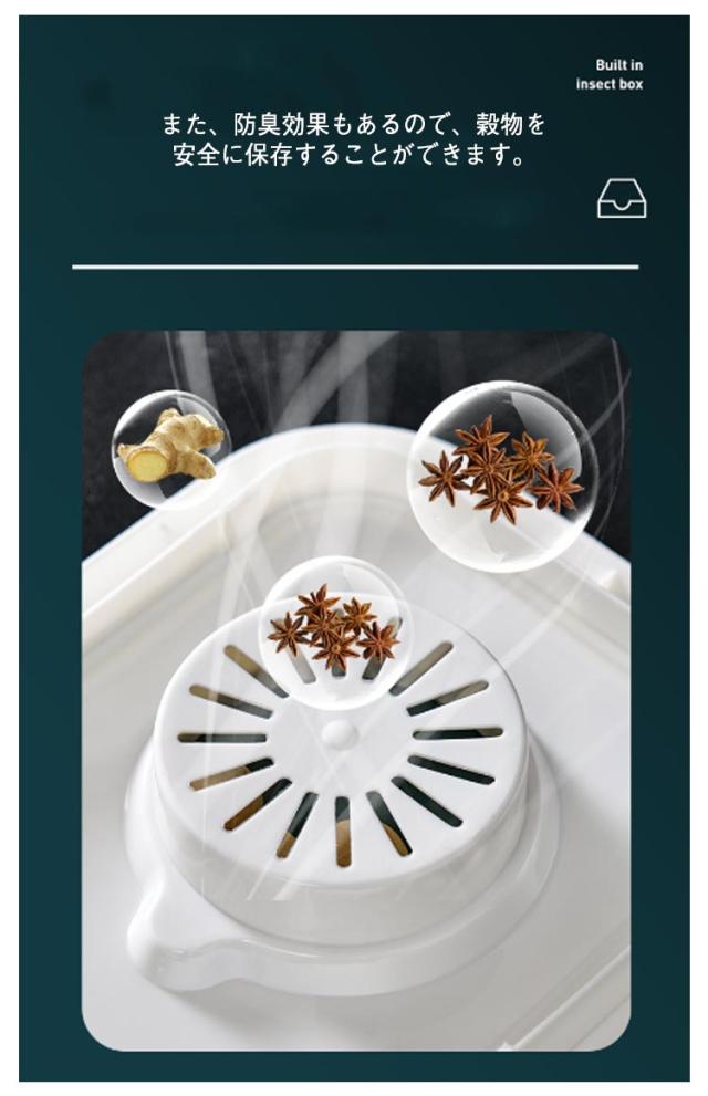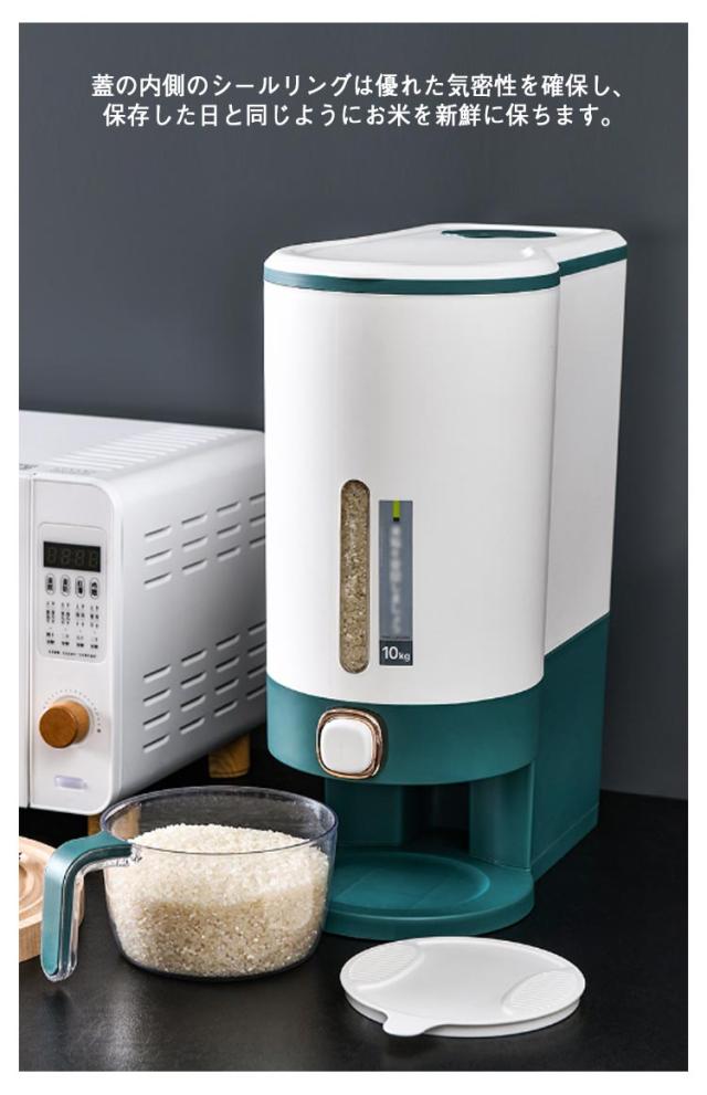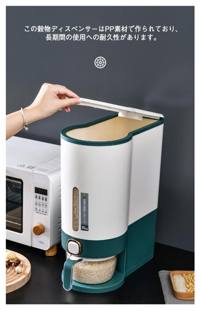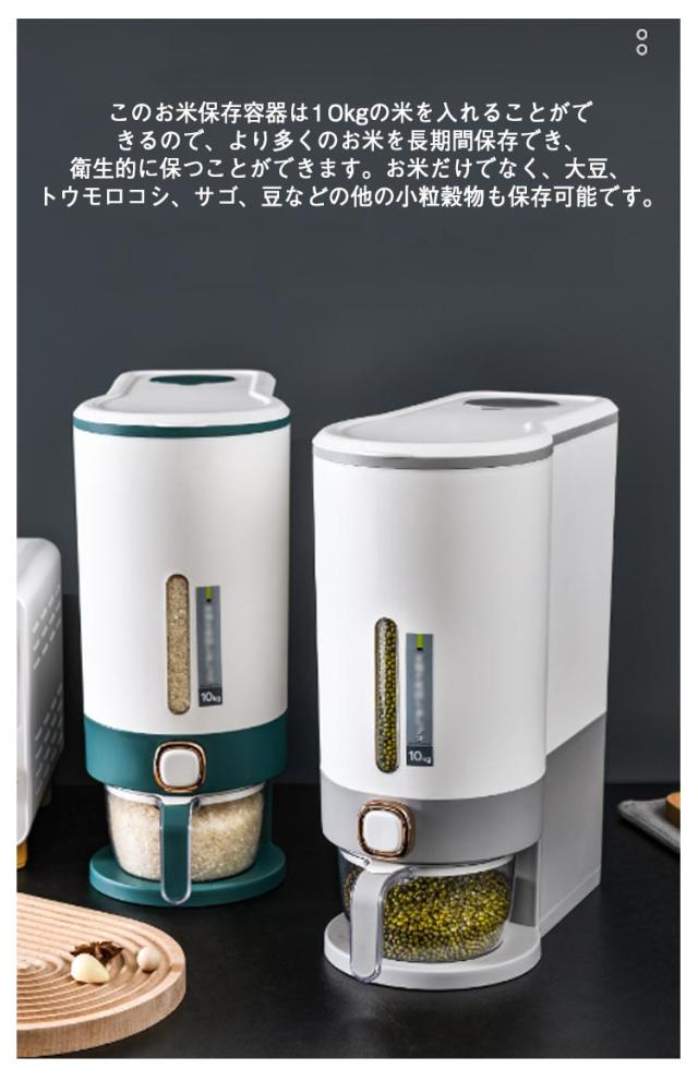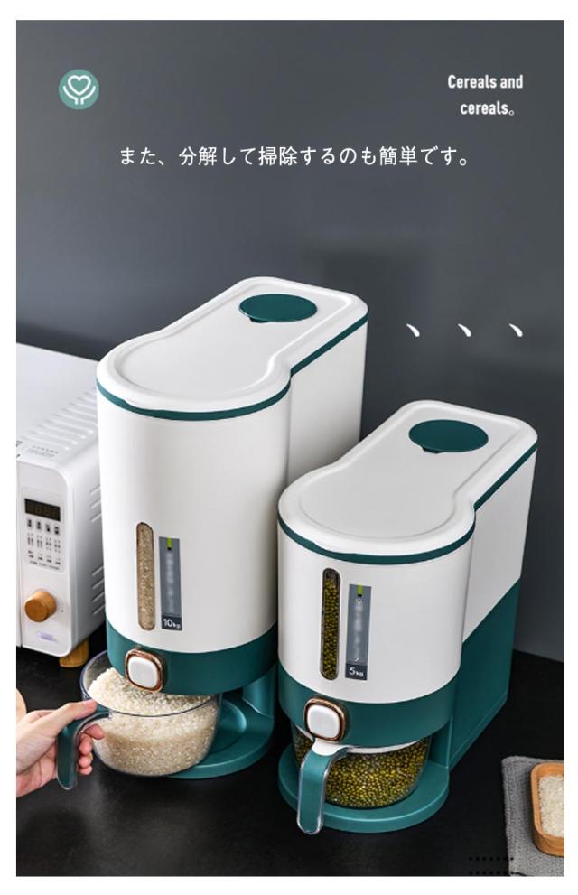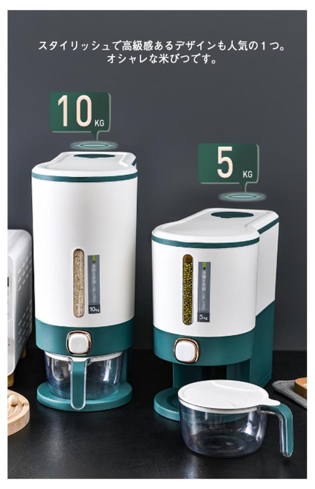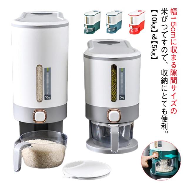 | 幅15cmに収まる隙間サイズの米びつですので、収納にとても便利。【10kg】&【5kg】 このお米保存容器は10kgの米を入れることができるので、より多くのお米を長期間保存でき、衛生的に保つことができます。お米だけでなく、大豆、トウモロコシ、サゴ、豆などの他の小粒穀物も保存可能です。 この穀物ディスペンサーはPP素材で作られており、長期間の使用への耐久性があります。蓋の内側のシールリングは優れた気密性を確保し、保存した日と同じようにお米を新鮮に保ちます。また、防臭効果もあるので、穀物を安全に保存することができます。 ボタンを押すだけでお米を出し、ボタンを離すと停止します。クリア部分はお米の残量がわかります。また、分解して掃除するのも簡単です。 付属品であるカップは、多機能に使えるように設計されています。透明で視認性がよく、目盛りがついているので、簡単かつ正確にお米をすくうことができます。 スタイリッシュで高級感あるデザインも人気の1つ。オシャレな米びつです。 | |