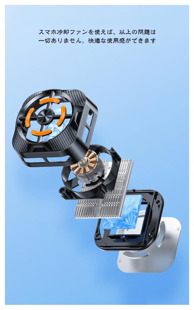 | 【スマホ用冷却ファン】スマートフォンを長時間使用するとき、または暑い環境でゲームをするときは、スマホ本体の温度が高くなってしまいます。そのせいで、スマホ本来の性能を利用できず、スマホの使用寿命も短縮されてしまいます。スマホ冷却ファンを使えば、以上の問題は一切ありません。快適な使用感ができます。 【マグネット式】このスマホ冷却ファンにはマグネット技術を施されており、ただスマホ本体の背面に置けば自動吸着でき、余った固定装置は要らず、より軽量化な設計となります。しかも、冷却ファンを装着したままで、あまり使用を干渉せず、使用感抜群です。 【急速冷却ペルチェ素子】高品質なペルチェ素子で、業界高レベルの冷却度を誇ります。ハードウェア加工により外部からの温度を吸収し、内部から冷却エアを提供できます。一番の放熱装置で一番の放熱効果をもたらせます。 【騒音低&コンパクト】わずかな騒音だという日常生活に完全に影響を及ぼさずくらいで、ゲームや動画の邪魔にもなりません。冷却ファン本体も軽量かつコンパクトなので、持ち運び便利です。 | |