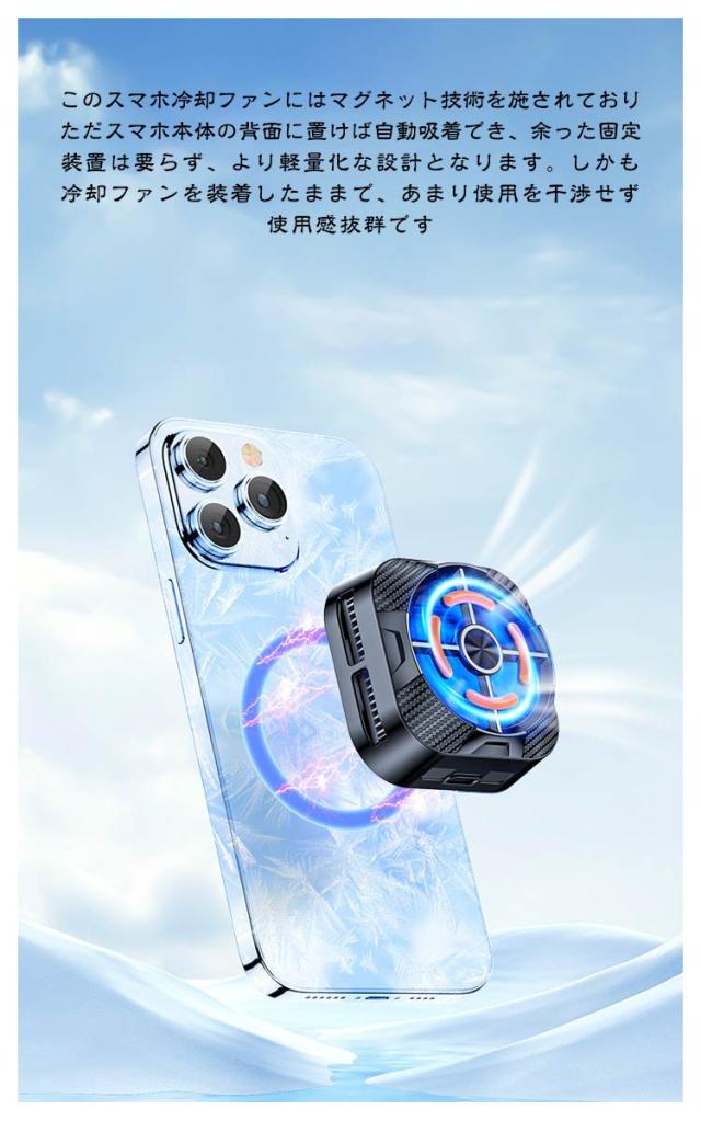 スマホ 冷却 スマホクーラー スマホ冷却ファン ペルチェ素子 Mag-Safe磁気式 マグネット式 放熱装置 半導体 冷却クーラーファン 急速冷却 温度控え マグネット式 静音 軽量 小型 USB給電 実況 ゲーム専用 iPhone/iPad/Android 多機種対応 冷却装置 耐久性高い