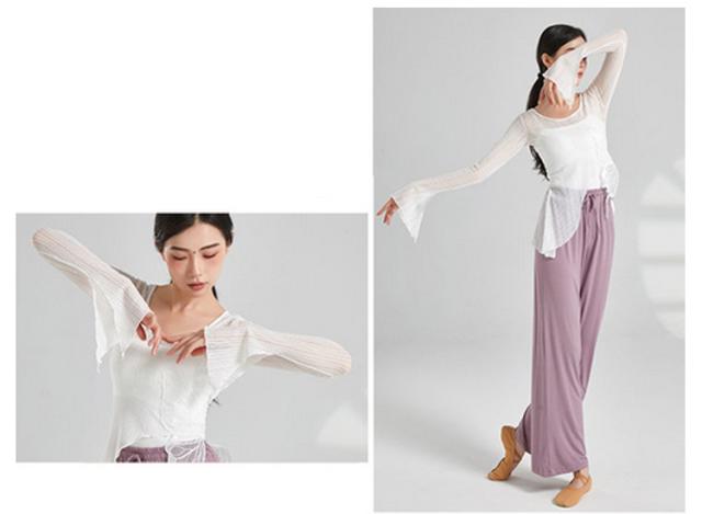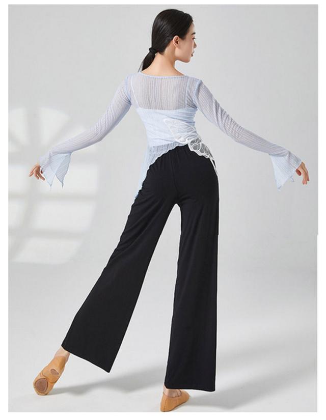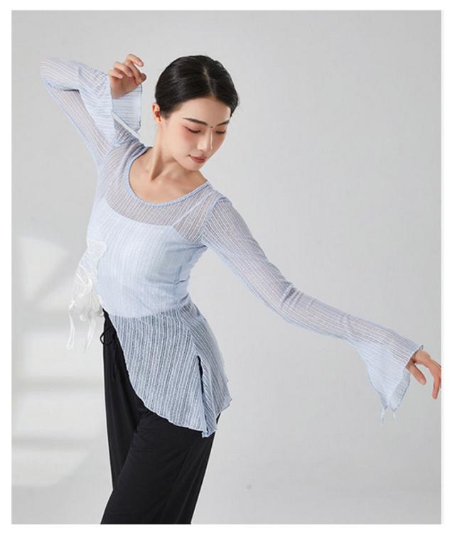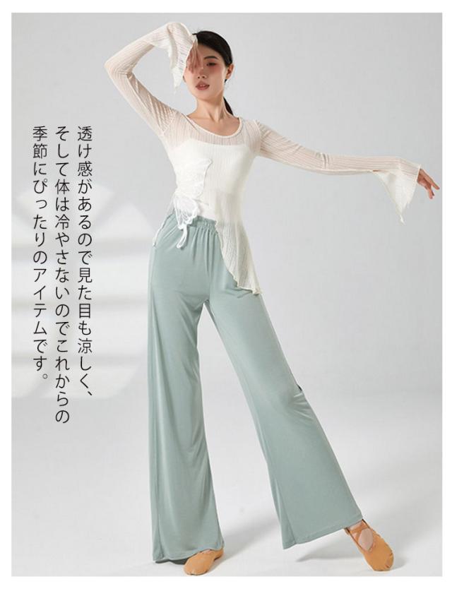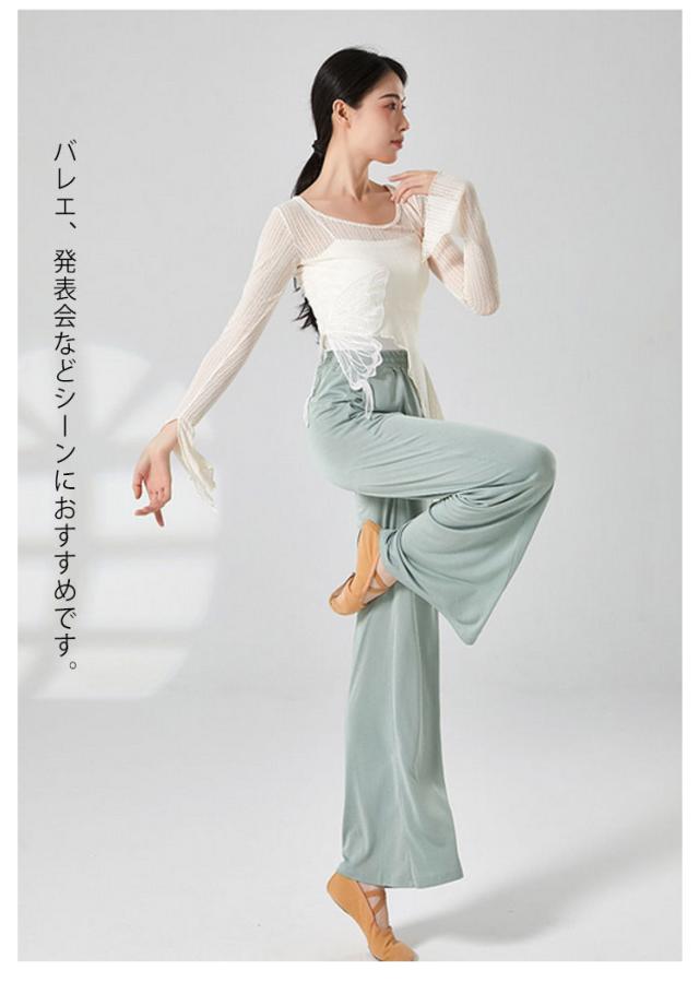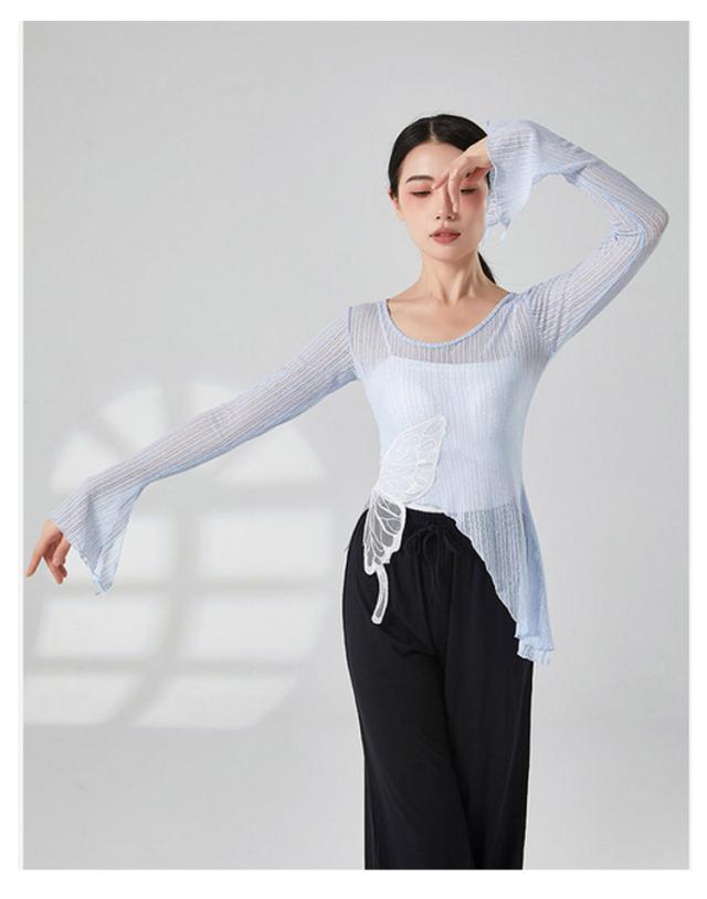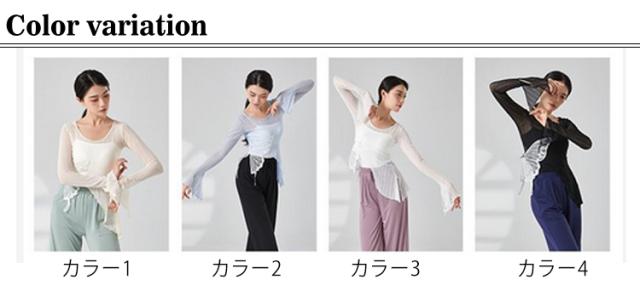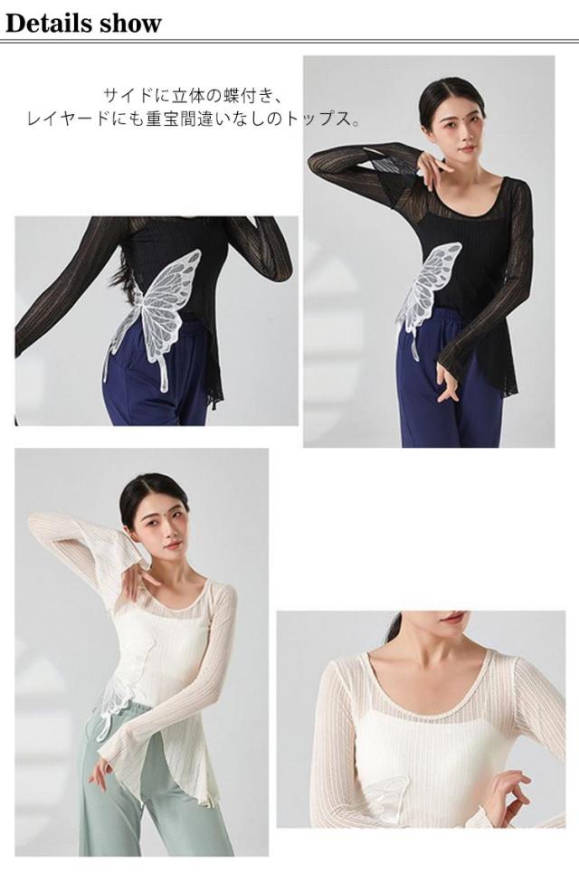 蝶 バレエ トップス ショート丈 レディース メッシュ バレエトップス シアートップス シースルー トップス カシュクール Tシャツ フレア袖 透け感 ダンス衣装 練習着 発表会 S M L XL