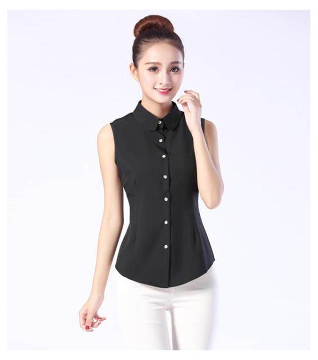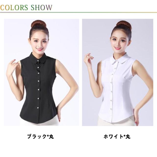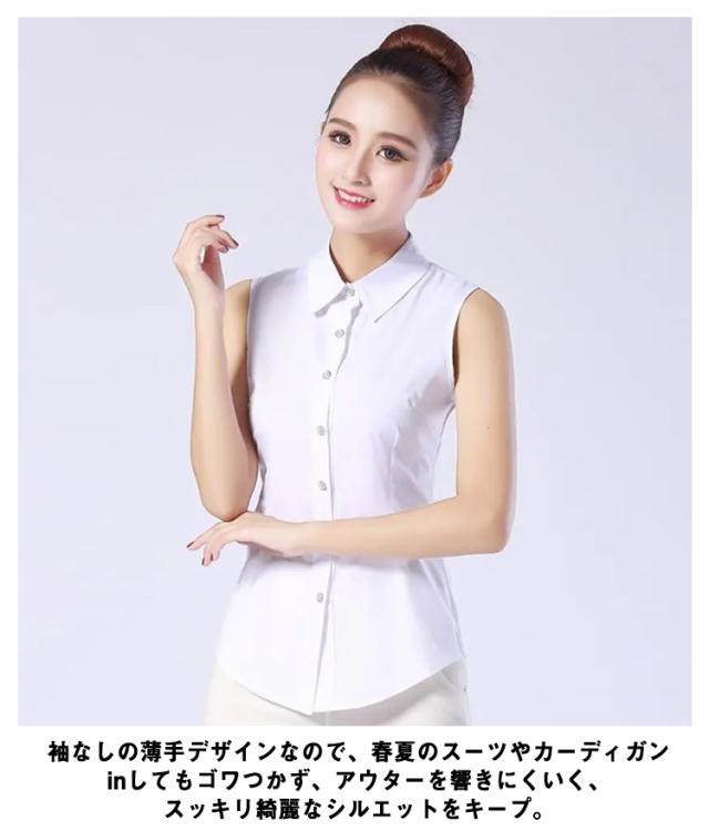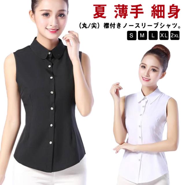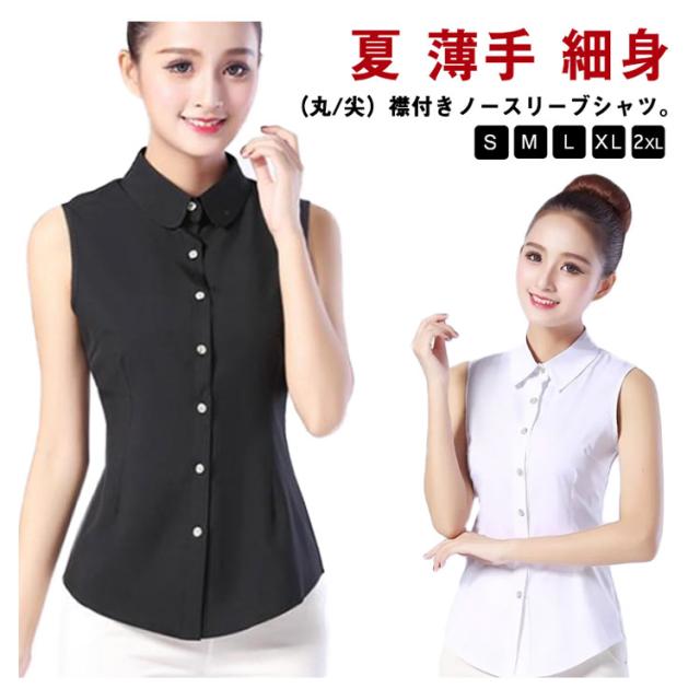 ノースリーブ Yシャツ レディース シャツ ホワイト ブラウス 袖なし 襟付き 白シャツ 白 黒 夏 薄手 スーツ インナー シフォンシャツ ホワイトシャツ 細身 スリム 就活 リクルート OL 通勤 S M L XL 2XL
