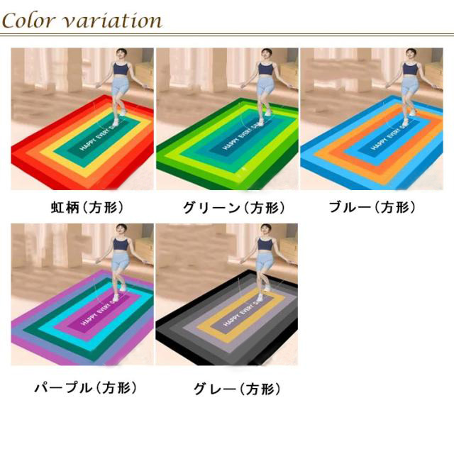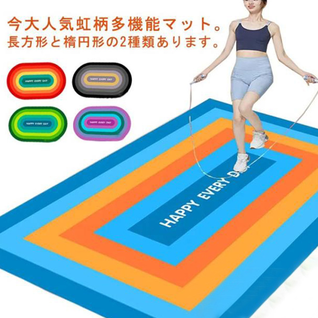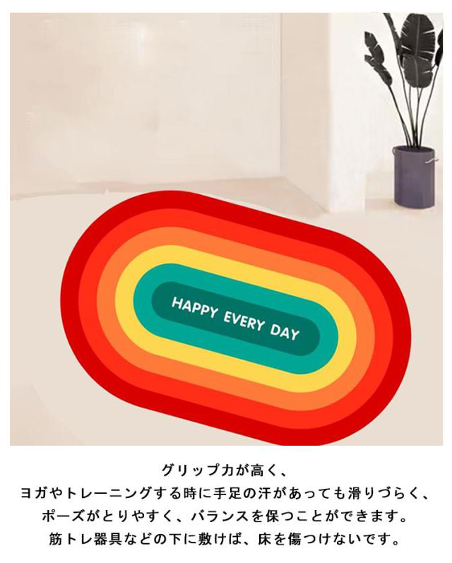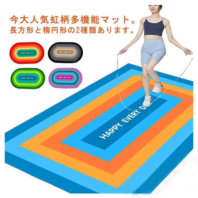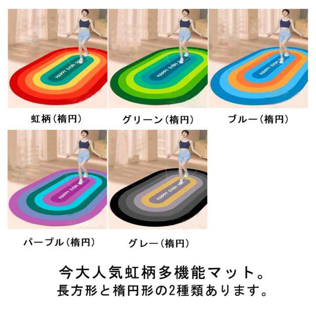 | 今大人気虹柄多機能マット。長方形と楕円形の2種類あります。 柔らかくて肌にやさしくて滑りにくくて毛が抜けません。家族も子供も安心して使えます。 7mm吸音制振綿で足関節への衝撃を減らし、雲に浮かぶような運動体験ができます。 底部は滑りにくく摩耗に強い、地面に密着してほとんど働きません、床を保護します。 グリップ力が高く、ヨガやトレーニングする時に手足の汗があっても滑りづらく、ポーズがとりやすく、バランスを保つことができます。筋トレ器具などの下に敷けば、床を傷つけないです。 ヨガマット、トレーニングマット、フィットネスマット、ストレッチマット、ピラティスマット等に使用可能です。 | |