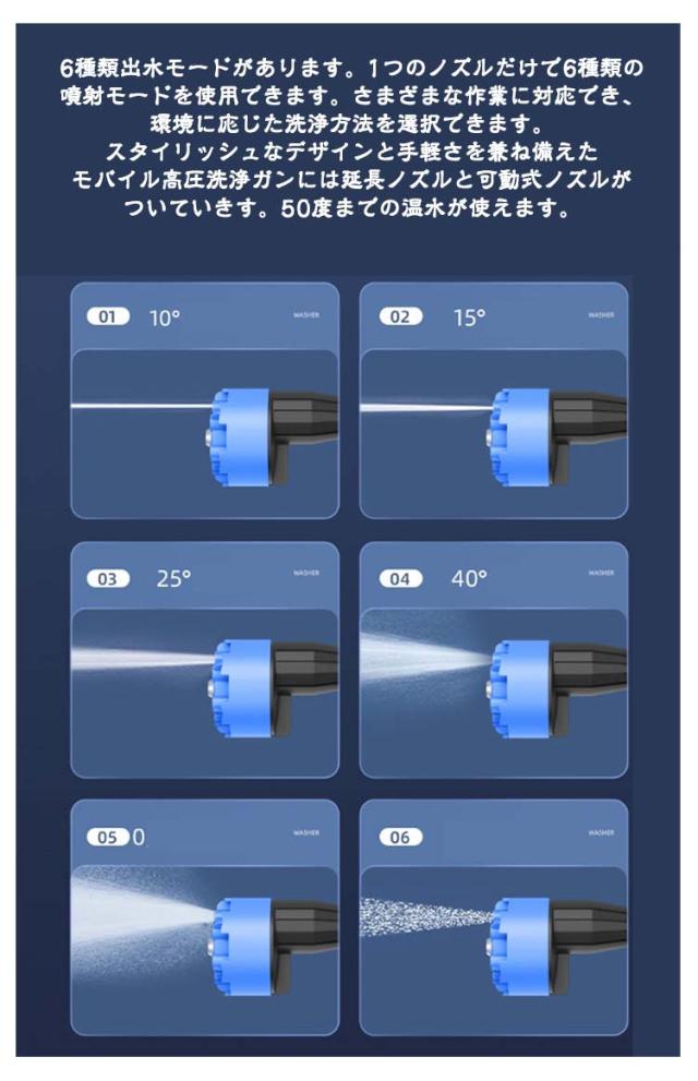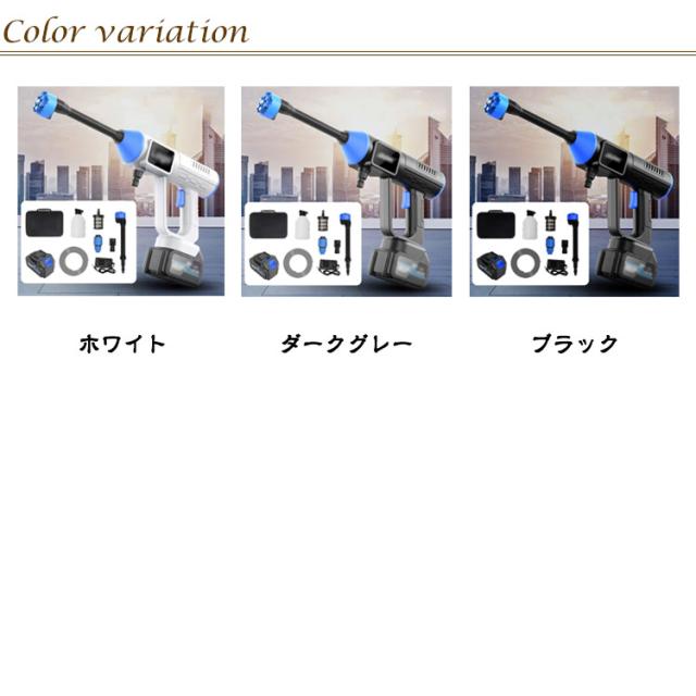 | サイズについての説明 | セット内容:ガン*1、バッテリー*1、収納箱*1、延長ホース*1、充電器*1、ノズル(調整可能)*1、給水接続口*1、フォームポット*1、フィルター*1 |