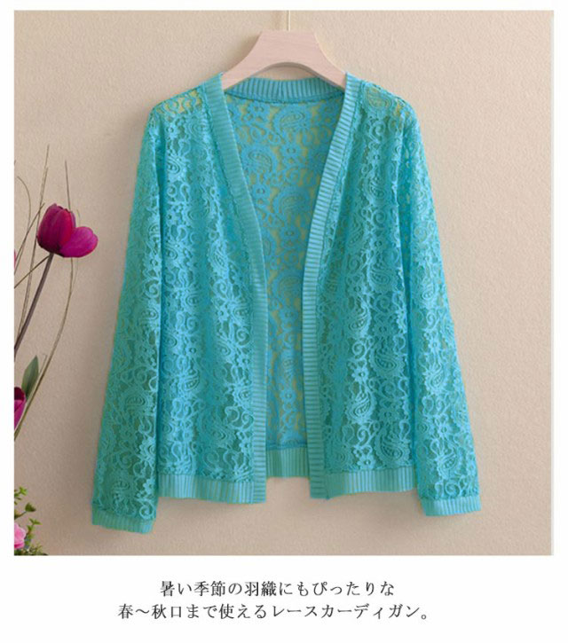 | 可愛い花柄の総レースのカーディガンです。 おしゃれな透け感が美しいカーディガンはジャケット代わりにも使えて便利。 かっちりした印象のジャケットも、カーディガン素材でストレッチが効いて心地良い素材です。 暑い季節の羽織にもぴったりな春〜秋口まで使えるレースカーディガン。 サラッとした肌触りで通気性も抜群。大人のオシャレなコーデにも。 カジュアルにも使えるコンパクトカーディガンです。 | |