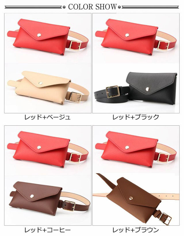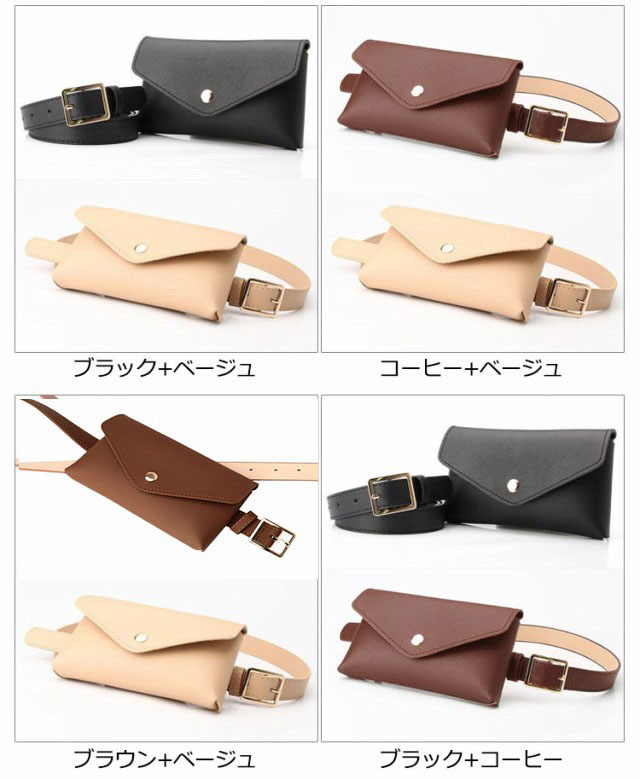 【2個組】 【送料無料】 レディース ベルト ベルトポーチ ウエストポーチ 女性 ベルトバッグ ウエストバッグ ベルトポシェット ヒップバッグ PU フェイクレザー ミニバッグ 一体型 個性的 おしゃれ かわいい