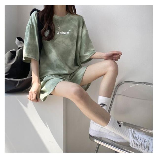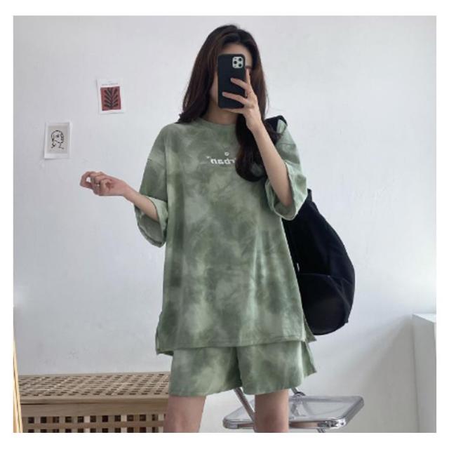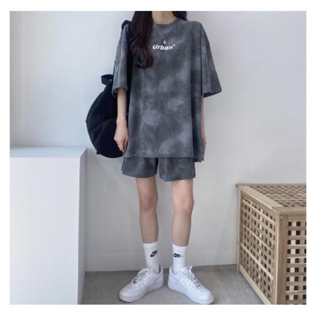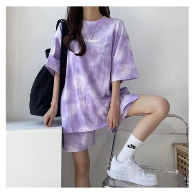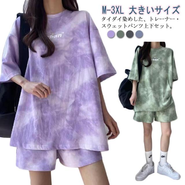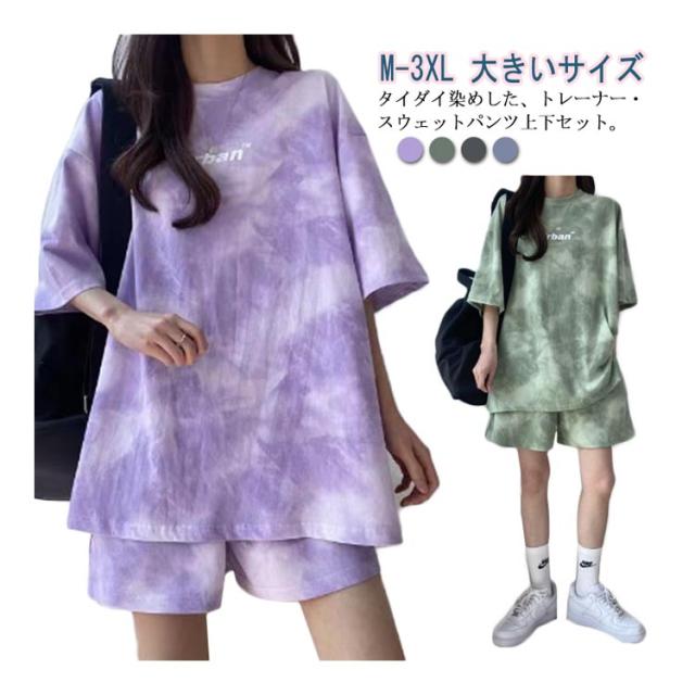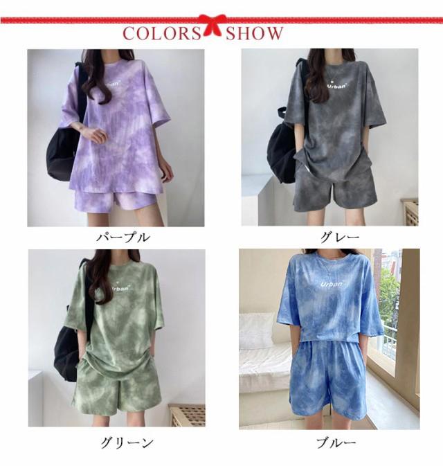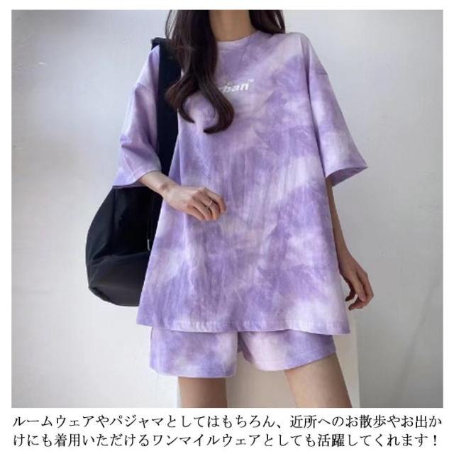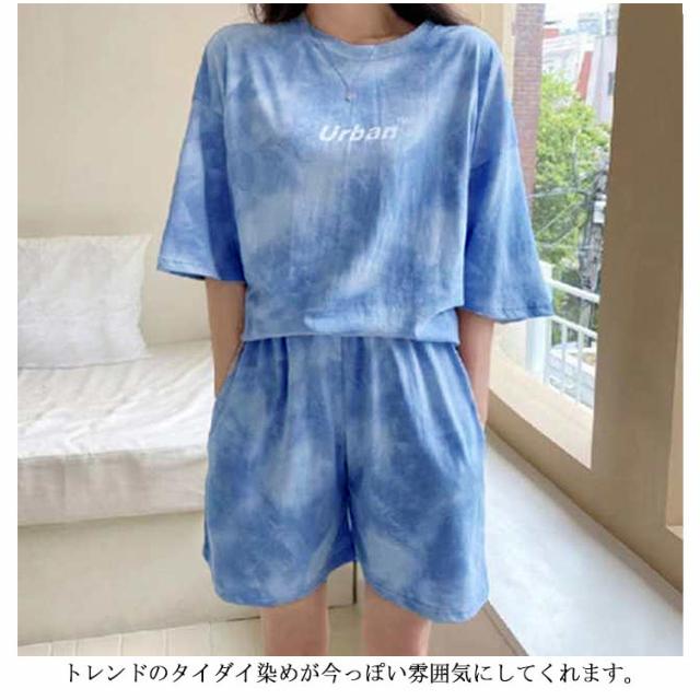 ルームウェア 上下セット タイダイ染め 送料無料 スウェット トレーナー レディース ジャージ セットアップ 部屋着 ショートパンツ 半ズボン 半袖 プルオーバー トップス 大きいサイズ ビッグシルエット パジャマ ダンス衣装 スポーツウエア