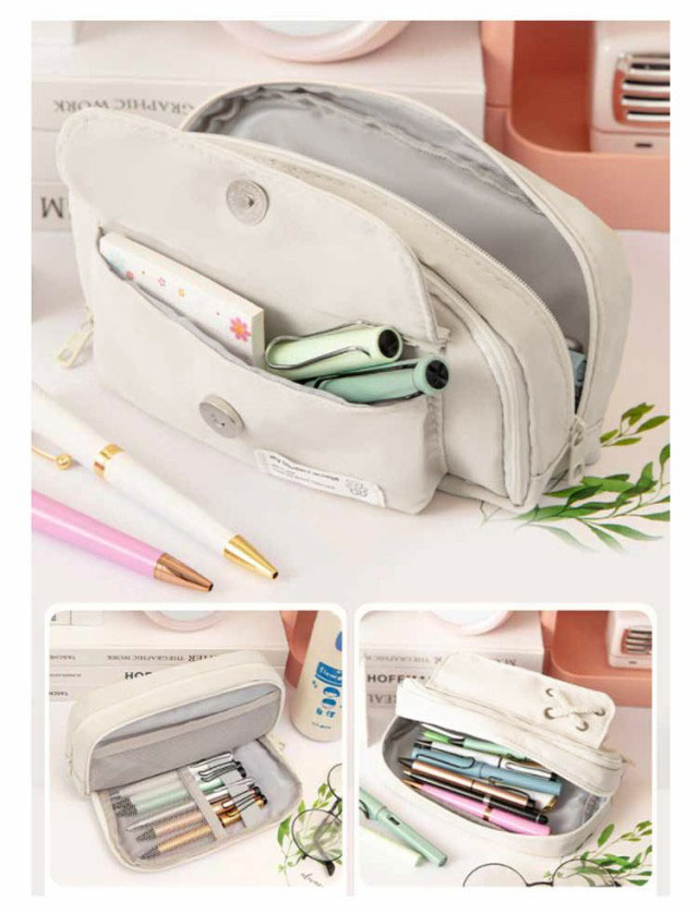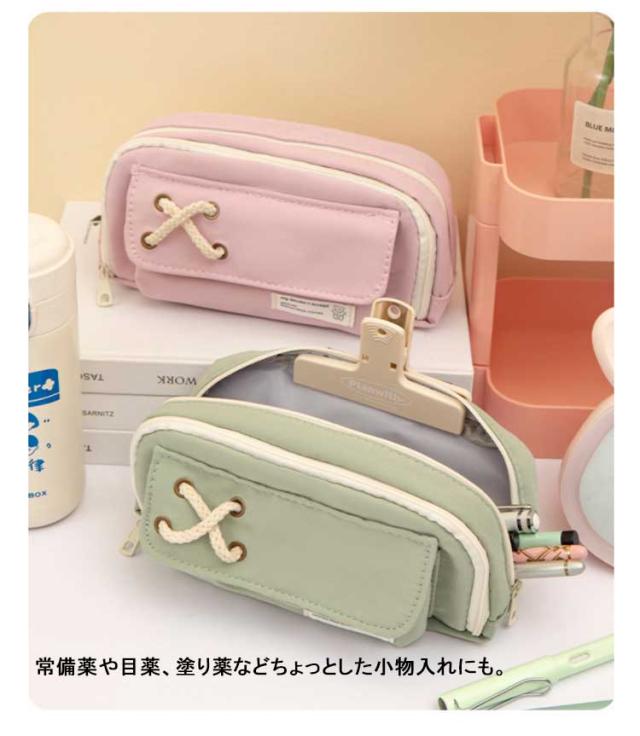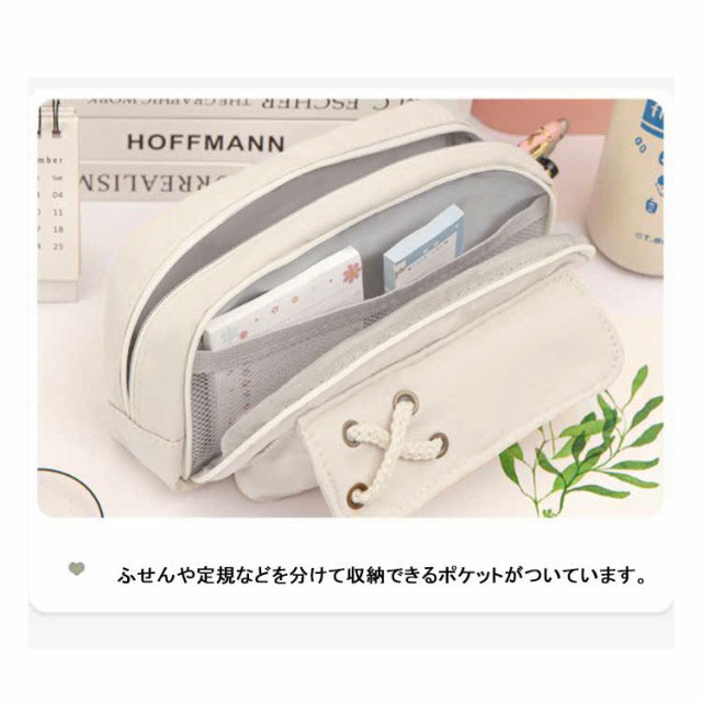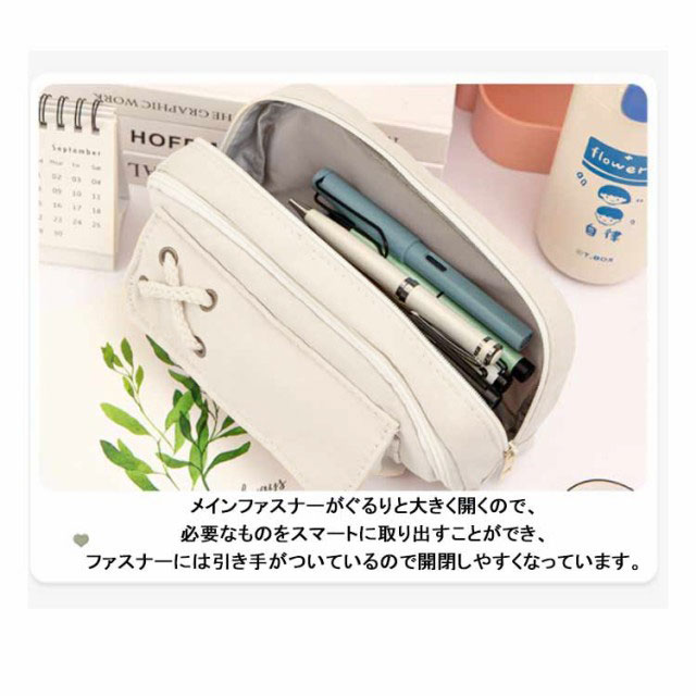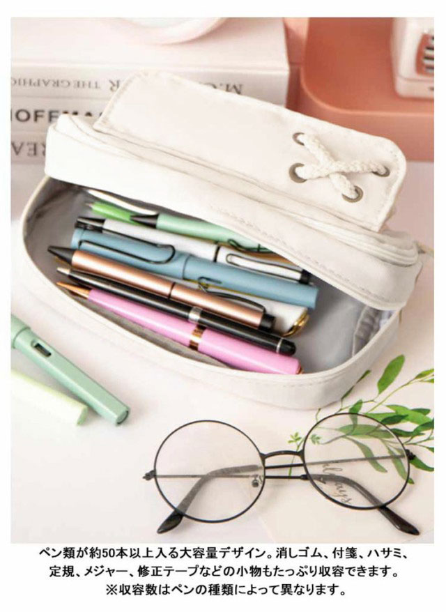 | 【たっぷり入る大容量】ペン類が約50本以上入る大容量デザイン。消しゴム、付箋、ハサミ、定規、メジャー、修正テープなどの小物もたっぷり収容できます。 ※収容数はペンの種類によって異なります。 【ペンが探しやすい】メインファスナーがぐるりと大きく開くので、必要なものをスマートに取り出すことができ、ファスナーには引き手がついているので開閉しやすくなっています。 【小物を分類できるメッシュポケット付き】ふせんや定規などを分けて収納できるポケットがついています。 筆記具などと分けて収容できるので、小物が探しやすく汚れにくいので安心です。 【ペンケース以外の用途にも便利】 化粧ポーチとしても有効活用可能。いつも携帯するUSBメモリやスマートフォンの携帯充電器の機器類にも。常備薬や目薬、塗り薬などちょっとした小物入れにも。 | |