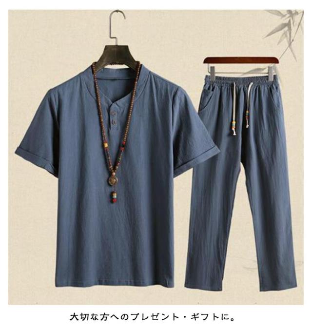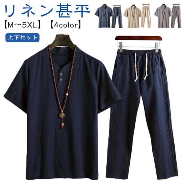 メンズ 甚平 上下セット リネン 綿麻 ヘンリーネック おしゃれ じんべい 涼しい じんべえ 男性 プレゼント 綿麻甚平 2点セット パジャマ 半袖 無地 シンプル 部屋着 夏物 大人 部屋着 綿 ルームウェア セットアップ 紳士 ロングパンツ 大きいサイズ 夏祭り 男性和服