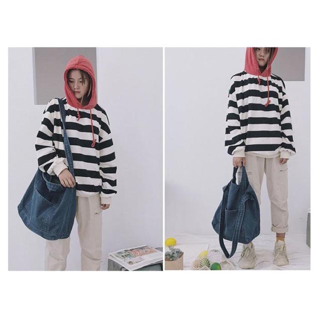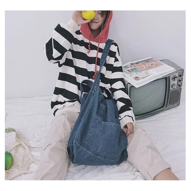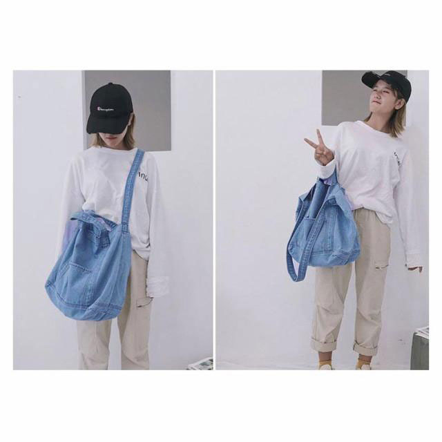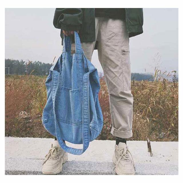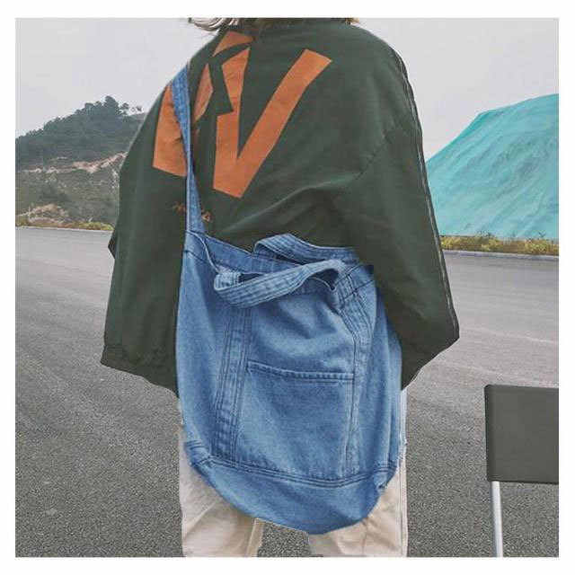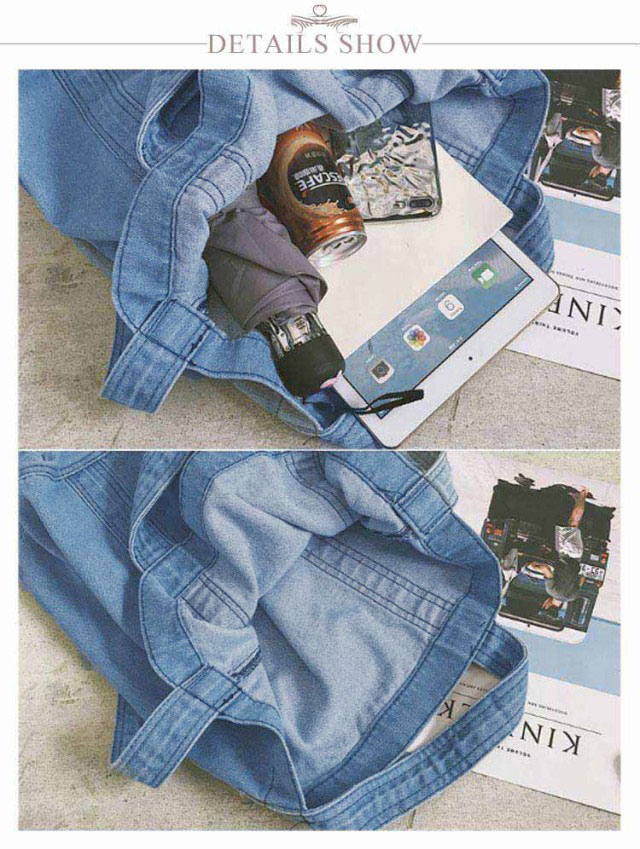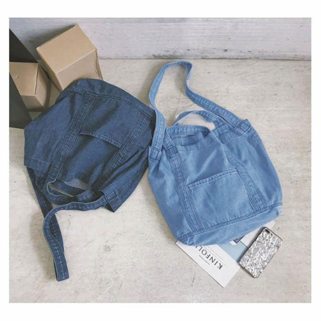 | 大容量が嬉しいデニムトートバッグ しっかり大きくたくさん入るトートバッグ。 デニムの素材感がかわいいので爽やかなコーデに取り入れたいアイテム。 持ち手も柔らかなデニム生地で太めなので肩がけしても疲れにくいです。 かなりの大容量なので荷物が多くても安心のメインバッグサイズです。 | |