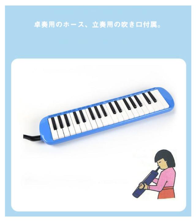 | サイズについての説明 | サイズ:415mm*105mm 鍵盤数:32 セット内容:鍵盤ハーモニカ、卓奏吹き口(ホース)、立奏用吹き口、お手入れクロス、収納ケース。 ※上記サイズは平置き実寸になります。 サイズ表の実寸法は商品によって1-3cm程度の誤差がある場合がございます。 |