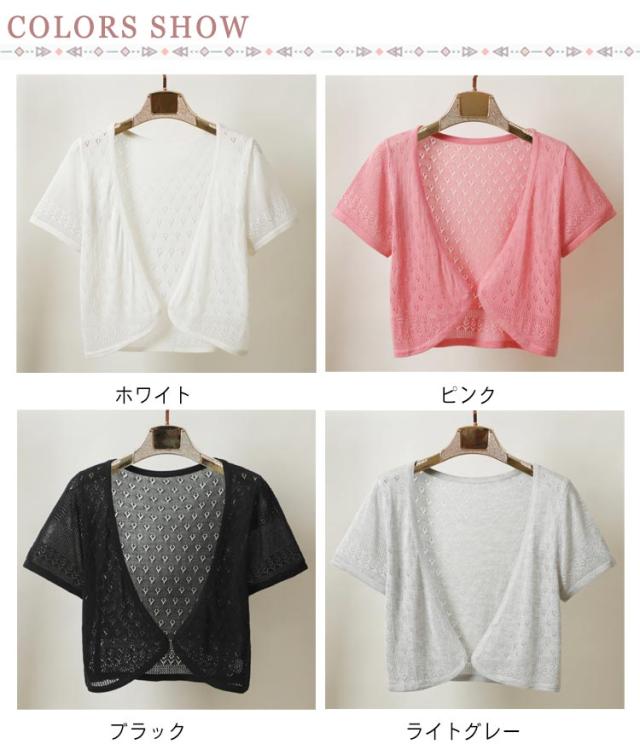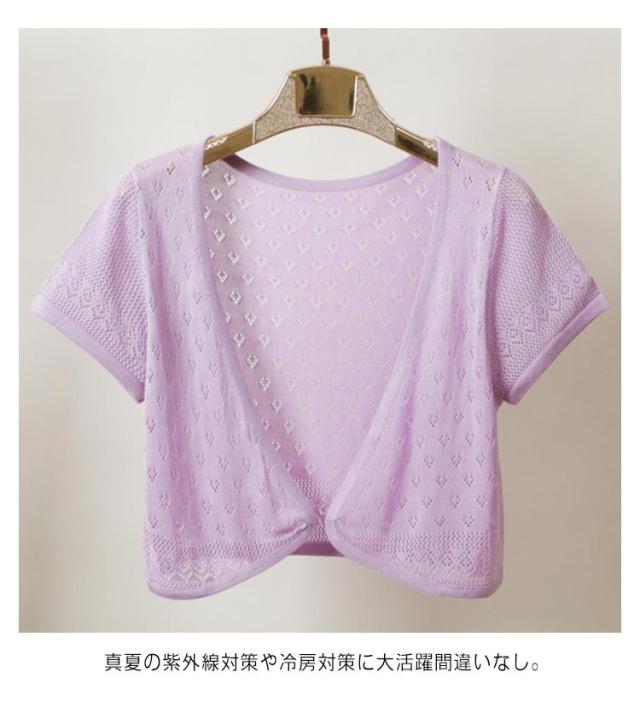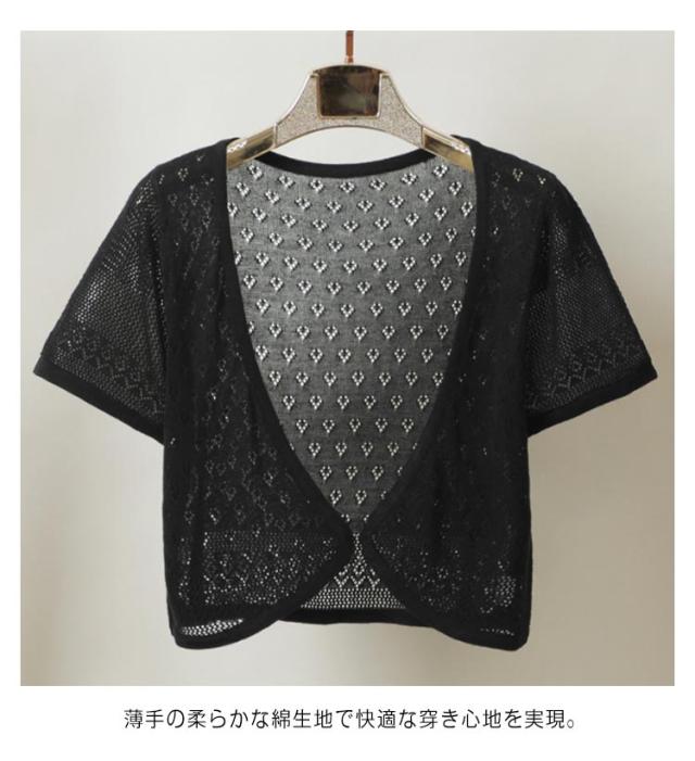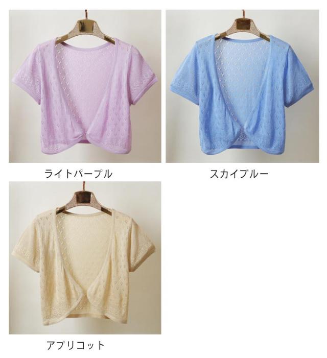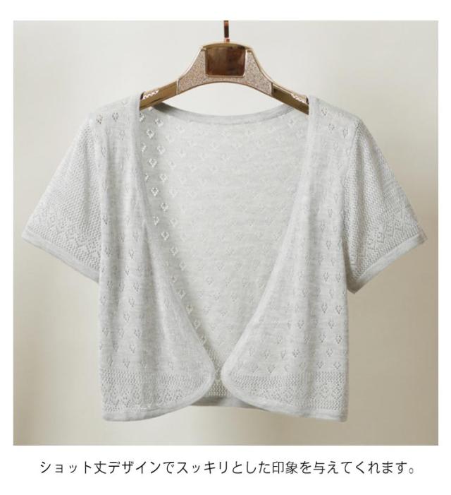 半袖 カーディガン レディース 半袖カーディガン サマーカーディガン サマーニット 透かし編み 透け感 透かし ボレロ 羽織り サマーニット ニットカーディガン サマー ニット UVカット 冷房対策 日焼け防止 夏用 春夏 薄手 Vネック ショート丈 送料無料
