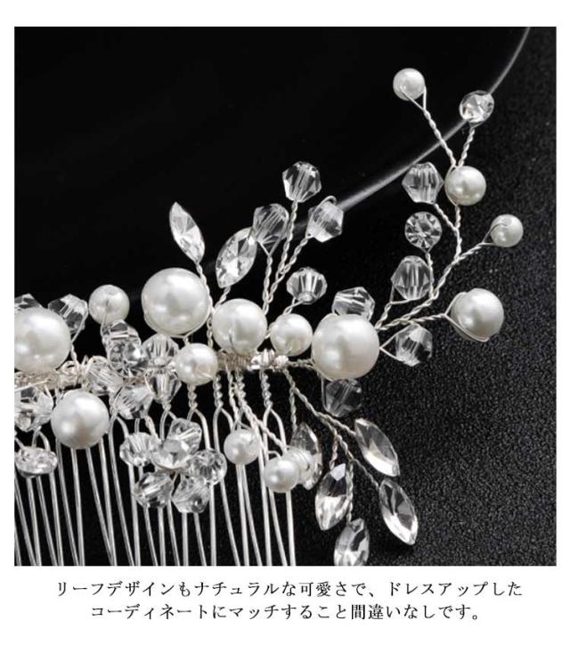 | 結婚式など特別な日のヘアアレンジに取り入れたいコーム。 さっと差し込むだけで、上品なスタイリングの完成◎ 異なる2つのサイズのパールをランダムにあしらって、ナチュラルに仕上げて! リーフデザインもナチュラルな可愛さで、ドレスアップしたコーディネートにマッチすること間違いなしです。 卒業式や謝恩会、結婚式等、和装・洋装どちらに合わせてもフィットするアイテムです◎ | |