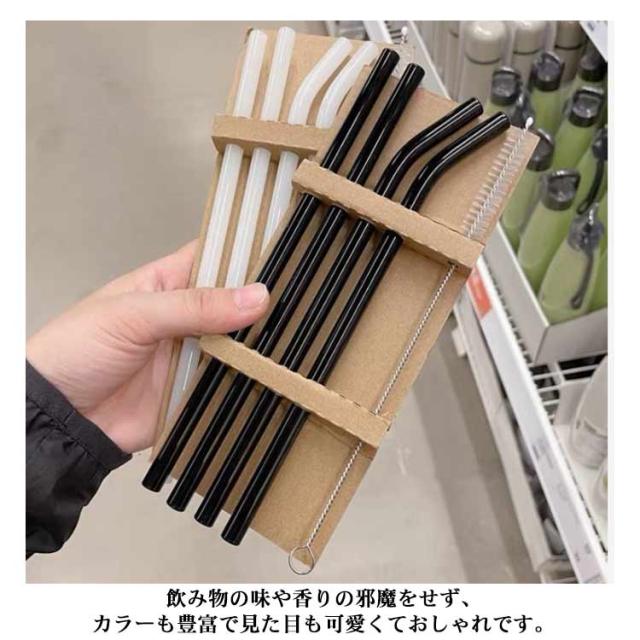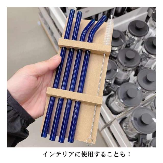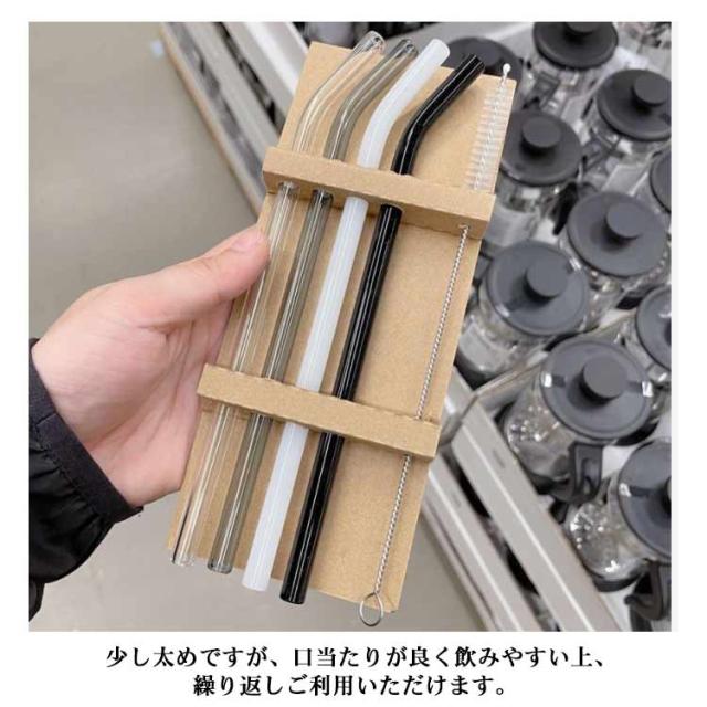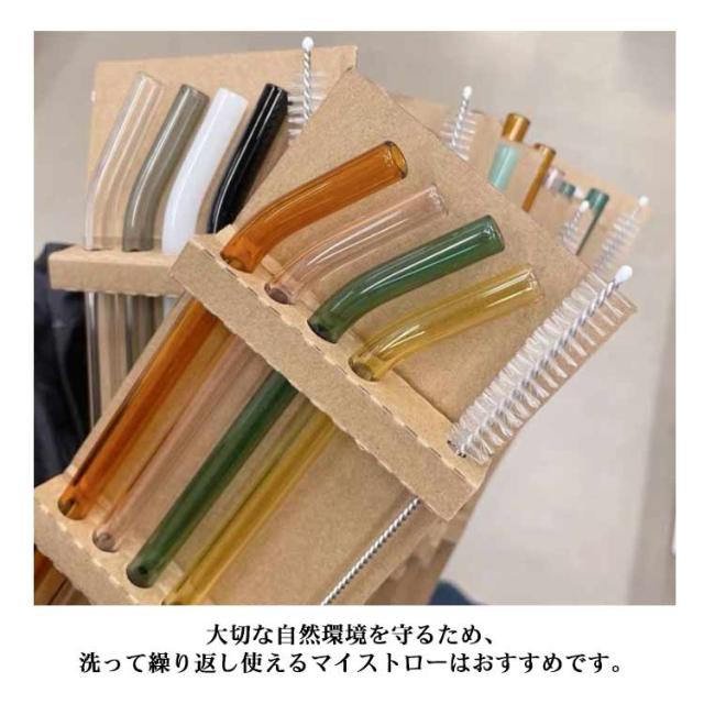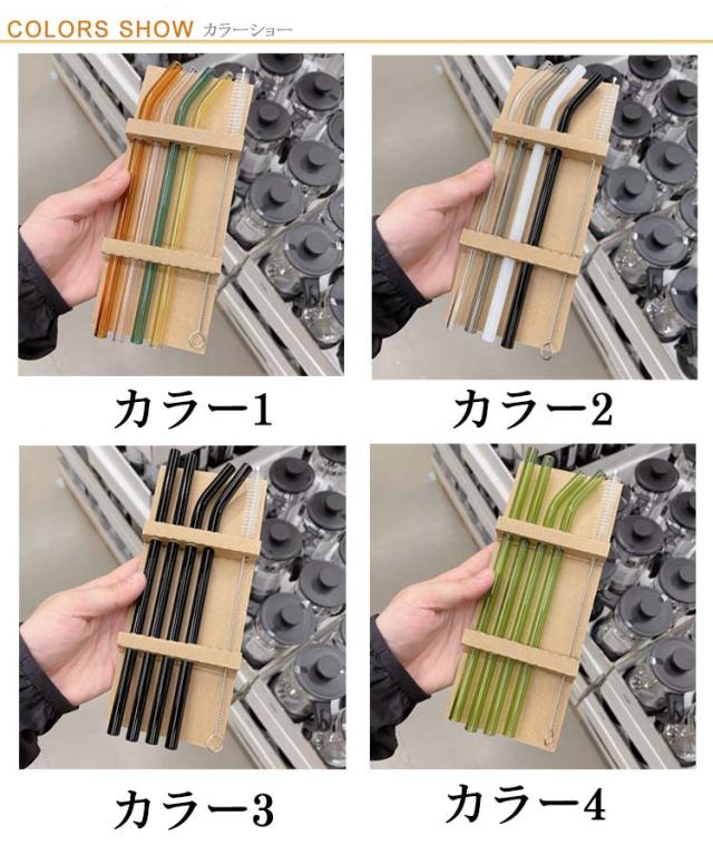 【送料無料】ストロー ガラスストロー エコストロー マイストロー カーブ ストレート 4本セット 洗浄ブラシ付き カラフル 耐熱ガラス 雑貨 マイストロー インスタ映え 普段 エコ 撮影用 ハロウィン 写真映え おうち カフェ オシャレ