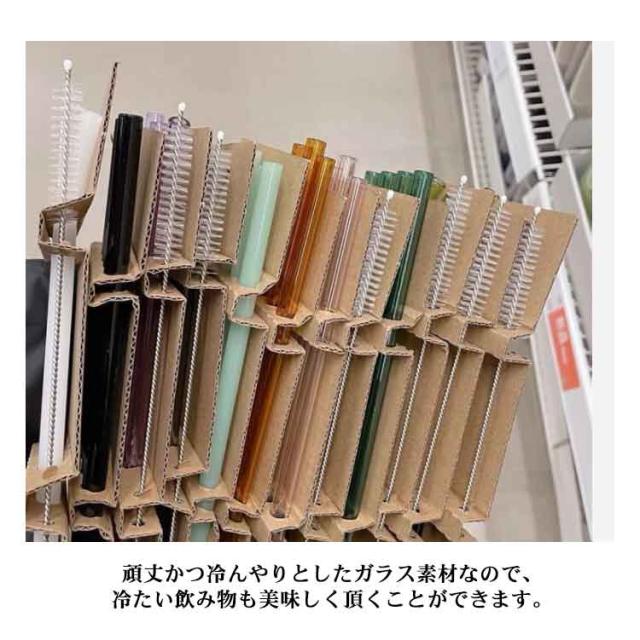 | 涼しげな印象で夏にぴったりの、ガラスストロー。 どこが汚れているか一目でわかる&洗浄ブラシ付きなので日々のお手入れも簡単です。 頑丈かつ冷んやりとしたガラス素材なので、冷たい飲み物も美味しく頂くことができます。 大切な自然環境を守るため、洗って繰り返し使えるマイストローはおすすめです。 飲み物の味や香りの邪魔をせず、カラーも豊富で見た目も可愛くておしゃれです。 少し太めですが、口当たりが良く飲みやすい上、繰り返しご利用いただけます。 インテリアに使用することも! 自宅、カフェ、オフィス、イベントなど様々なシーンで活用できるおしゃれエコグッズです。 | |
