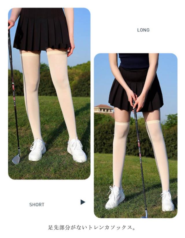 【2足セット】 【UPF50+】 ゴルフ ソックス 靴下 接触冷感 uvカット 膝上 ひざ下 ひざ上 着圧ストッキング アイスシルク ソックス トレンカ式 ストレッチ 伸縮性 着圧 オーバーニーソックス ニーハイ ハイソックス ゴルフ 暑さ対策 グッズ