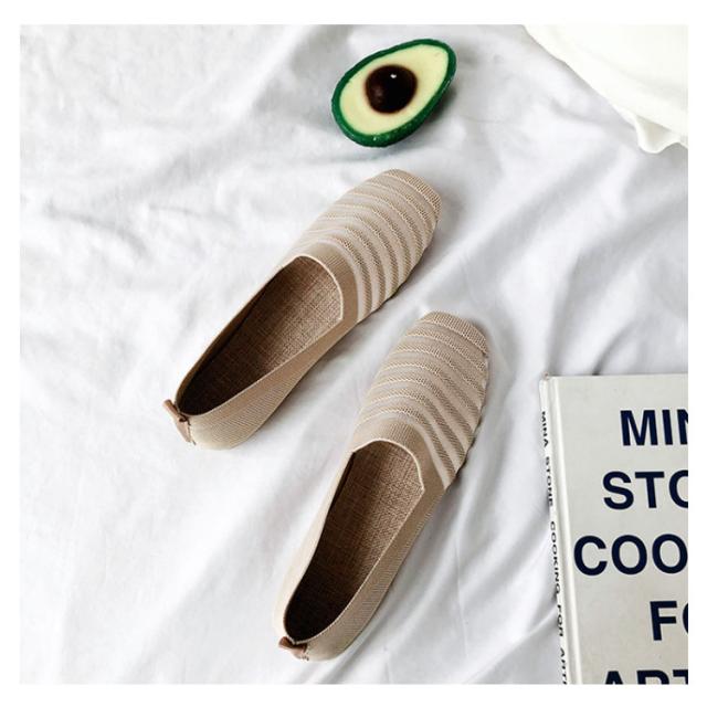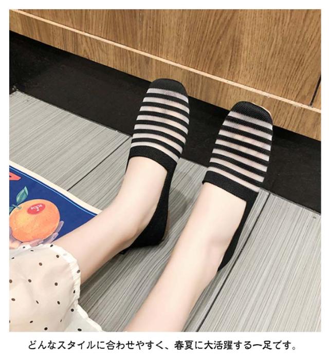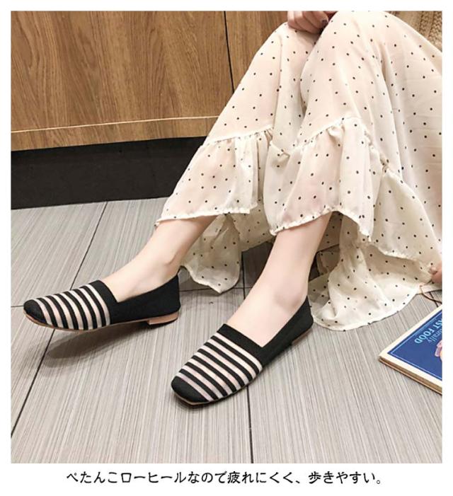ニットパンプス バレエシューズ 携帯スリッパ 送料無料 フラットシューズ レディース パンプス スリッポン ローヒール ペタンコ ボーダー 折りたたみ 透け感 春夏 秋