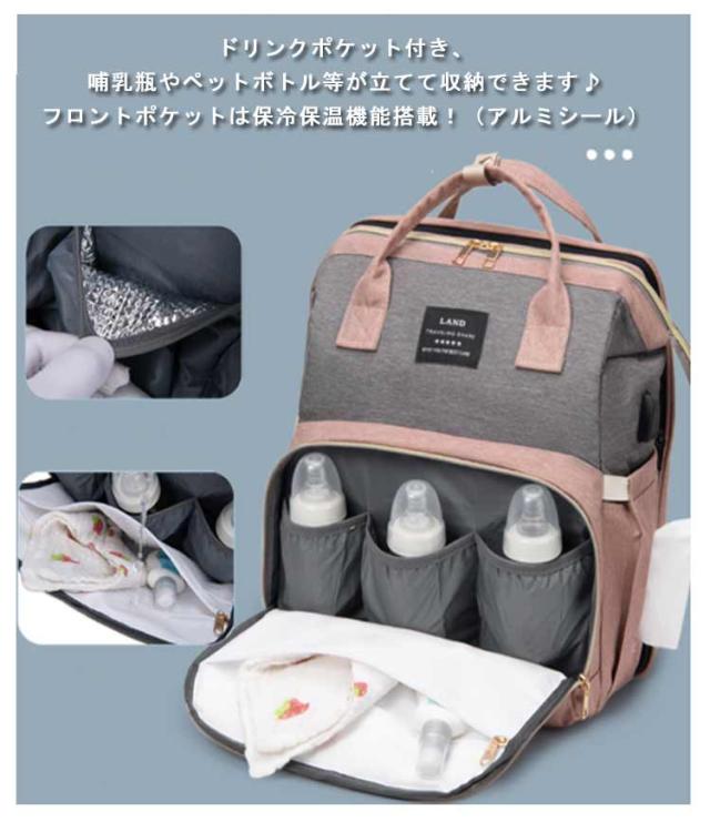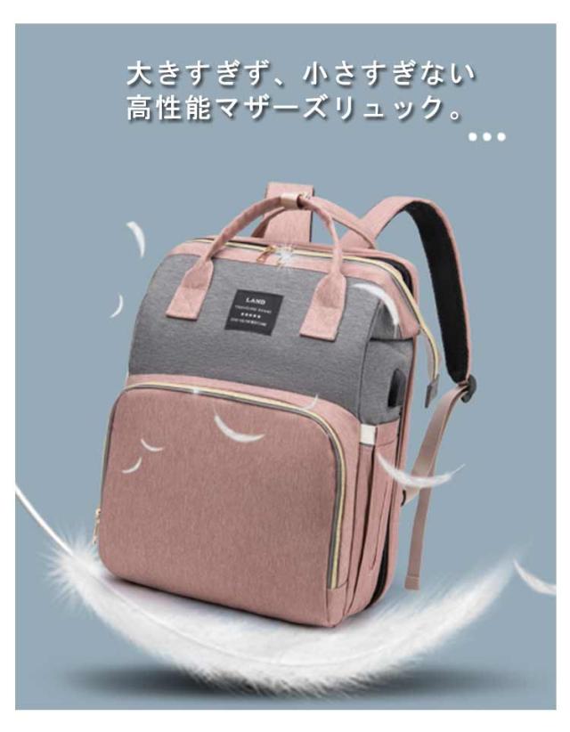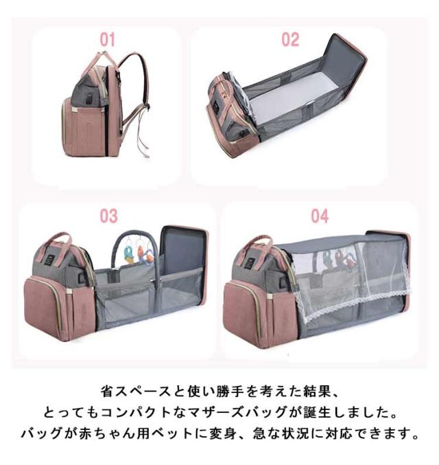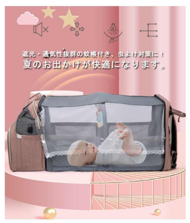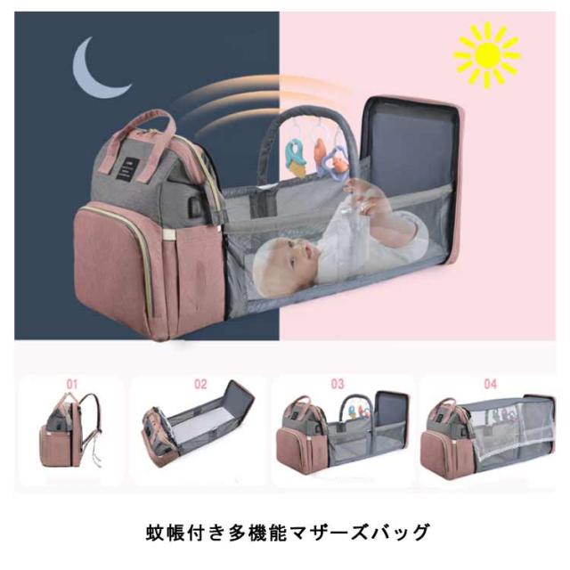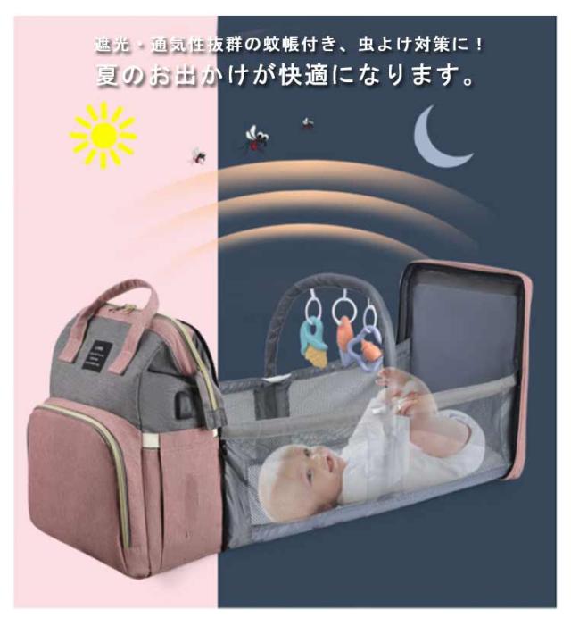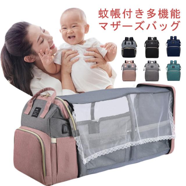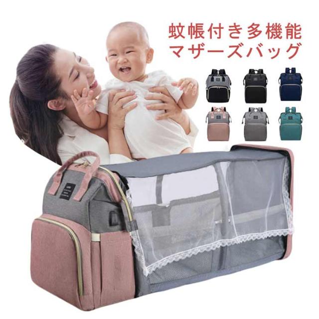 マザーズバッグ リュック ママバッグ 旅行バッグ 軽量 大容量 保温保冷 ベビーベッド 2way 遮光蚊帳付き ママリュック マザーズリュック 丈夫 防水 折りたたみ 保温ポケット付 USBポート搭載 虫よけ ベビー用品収納 旅行 リゾート 出産準備 出産祝い プレゼント 送料無料