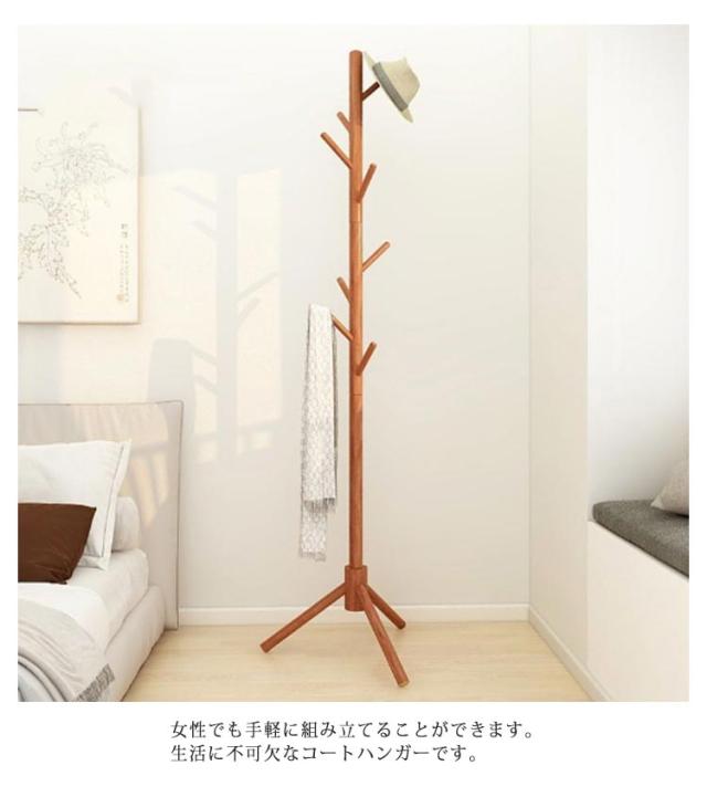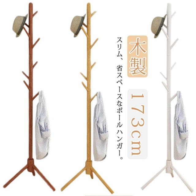 ポールハンガー 木製 おしゃれ スリム コートハンガー 木製ポールハンガー 玄関収納 ハンガーラック スタンド 衣類収納 省スペース 子供部屋 寝室 リビング かわいい ナチュラル ホワイト 木目調 茶色