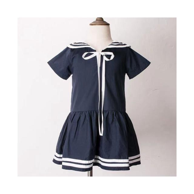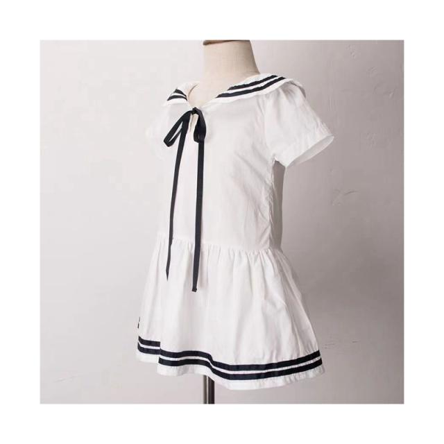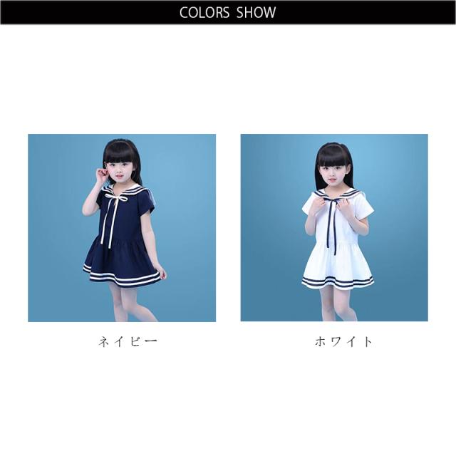 セーラーワンピース 子供服 セーラー服 半袖 リボン キッズ 子供服 セーラー風 女の子 セーラー襟 海軍風 襟リボン 送料無料 ロングワンピース 学院ワンピース 子供ワンピース かわいい おしゃれ おでかけ