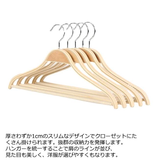 | 滑り止めのゴム付きの木製人体ハンガー。【30本セット】 ハンガー全体が丸みがあり、人体に近いカーブで衣類が型くずれしません。 厚さわずか1cmのスリムなデザインでクローゼットにたくさん掛けられます。抜群の収納力を発揮します。ハンガーを統一することで肩のラインが並び、見た目も美しく、洋服が選びやすくもなります。 ハンガーのフックは360°回転でき、どんな角度でも掛けられます。また、フックの部分はクロムメッキが施されていて錆にくい、長くお使い頂けます。 ナチュラル感のある天然木で作られ、洋室や和室といったどんなテイストのインテリアともマッチします。 | |