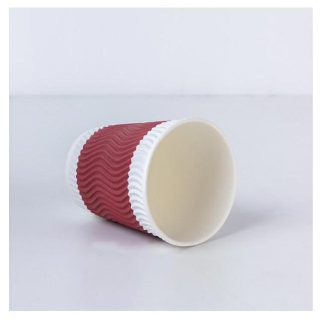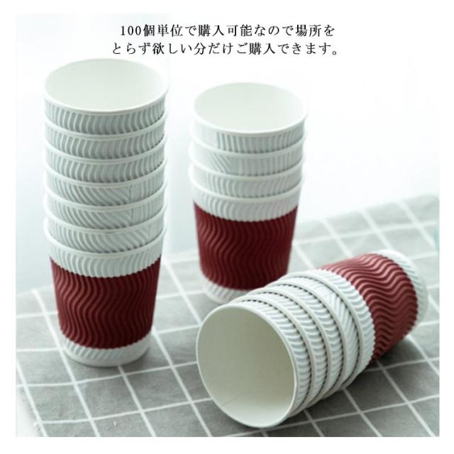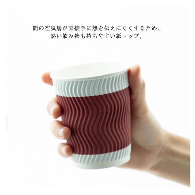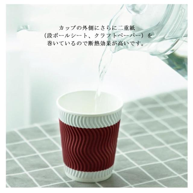 100個 耐熱紙コップ 8オンス 280ml 使い捨て 厚い 厚紙 エンボス 波柄 二重断熱紙コップ クラフト ペーパー カップ レッド コーヒー 耐熱 熱い お茶 ホットドリンク おしゃれ 高級感 業務用 オフィス 来客用 二重断熱 紙コップ