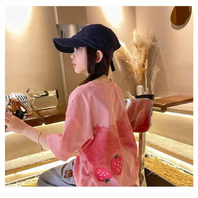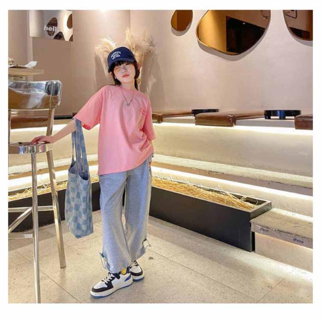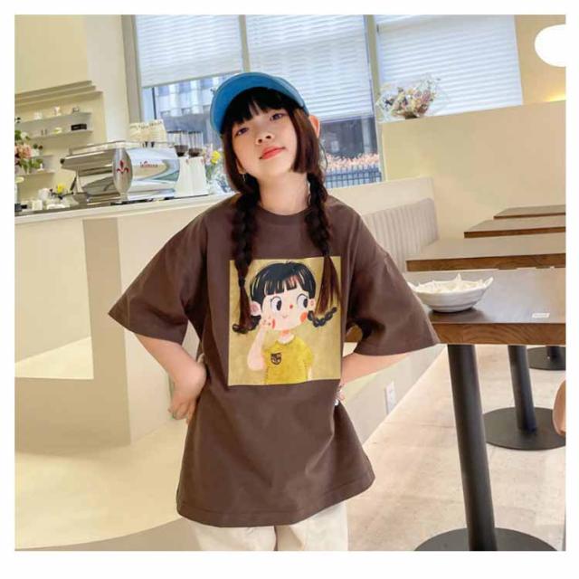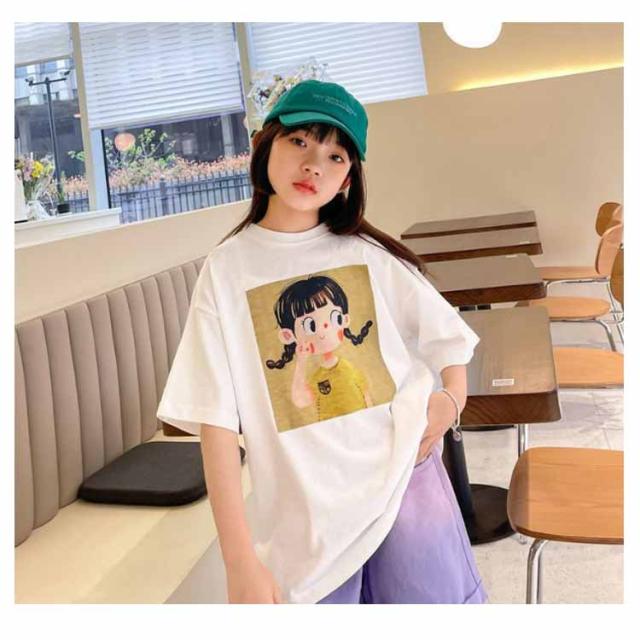 キッズ 半袖 Tシャツ 女の子 ロング丈 BIG tシャツ ビッグシルエット ストレッチ ジュニア ガールズ トップス ロンT ゆったり 子供服 小学生 中学生 ダンス 衣装 韓国子供服 大人っぽい 子ども服 こども服 運動会 春 夏 通園 通学 送料無料 110 120 130 140 150 160