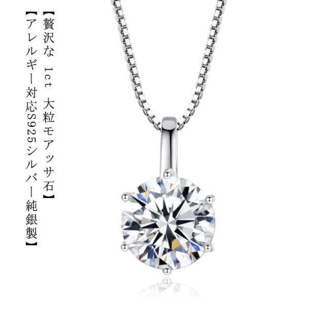 送料無料 ネックレス 1Carat モアサナイト ネックレス ひと粒 一粒 シンプル シルバー925 6爪 引き輪 40+5cm アジャスター ホワイト シルバー 大人気 ベネチアンチェーン ラウンド 大粒 一粒 定番 女性 プレゼント 30代 40代 50代 結婚式 ブランド 母の日 ギフト