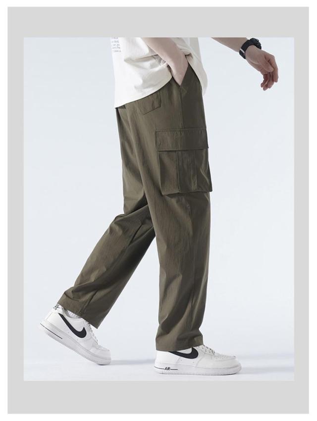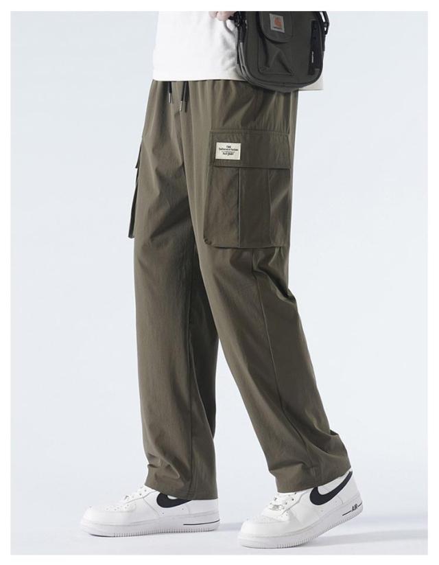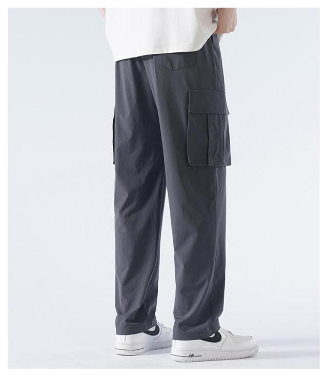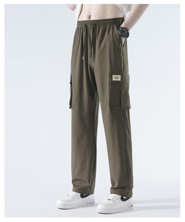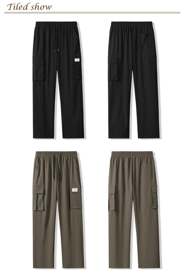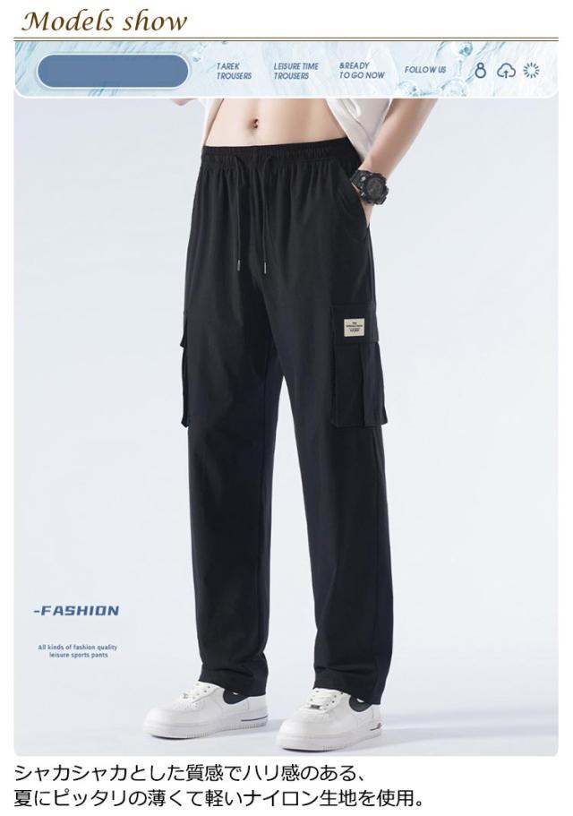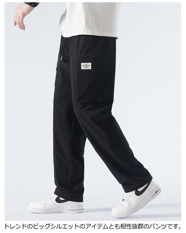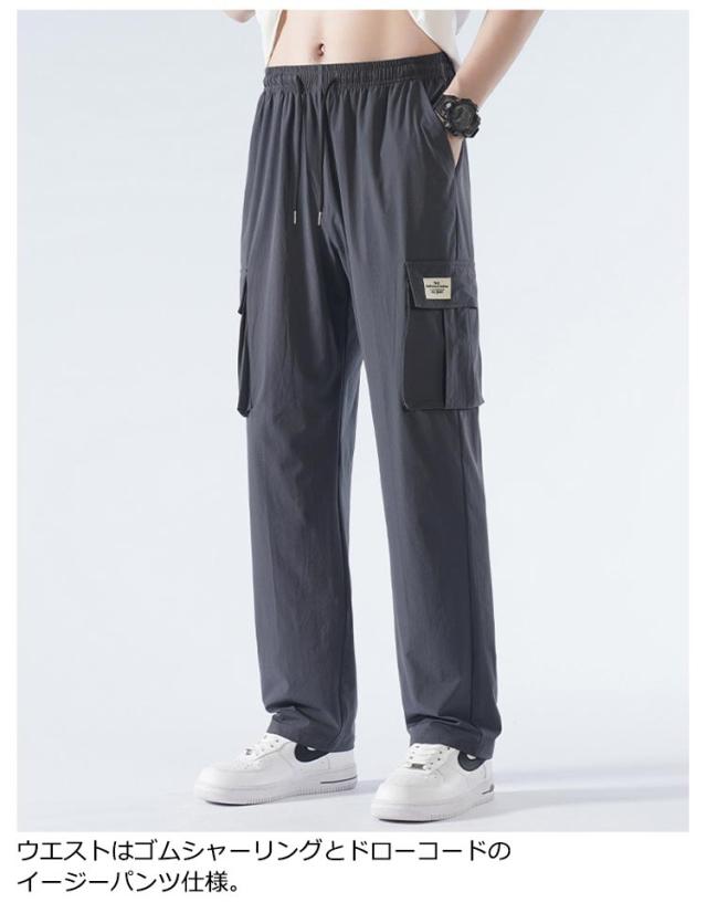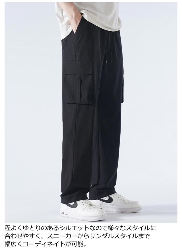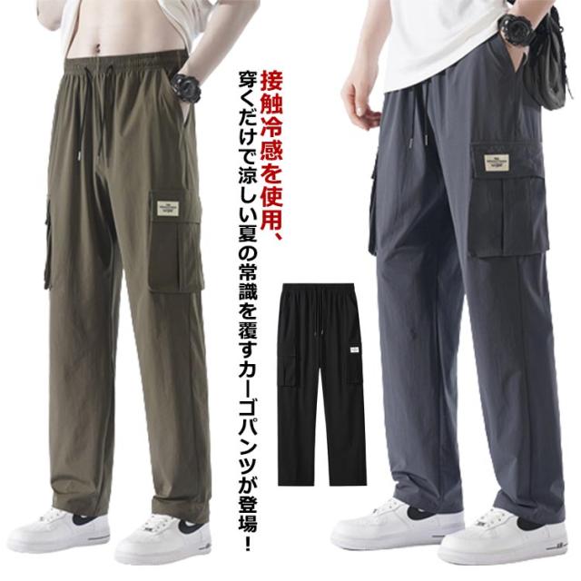 送料無料 接触冷感 カーゴパンツ メンズ ロングパンツ 夏 ゆったり 薄手 ワイドパンツ 作業着 ひんやり 涼しい 冷感パンツ チノパンツ ウエストゴム カジュアルパンツ ビックシルエット 無地 おしゃれ 大きいサイズ