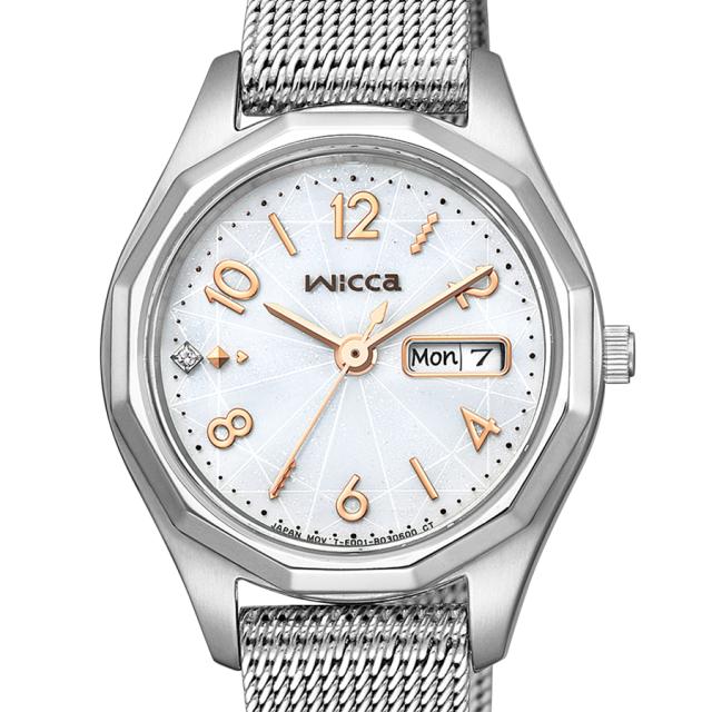 シチズン ウィッカ 多角形ベゼル KH3-517-11 レディース 腕時計 ソーラー シルバー メッシュバンド デイデイト