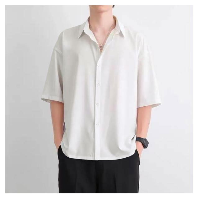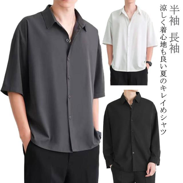 シャツ メンズ ゆる 五分袖 半袖 長袖 サマーシャツ 涼しい 接触冷感 ワイシャツ 韓国 ポロネック オーバーサイズ 爽やか 開襟シャツ 快適 速乾 派手 ストリート系 トップス カジュアル サラサラ ビジネス ワイシャツ ゆったり 夏 秋 ボタンダウン 春 無地 送料無料