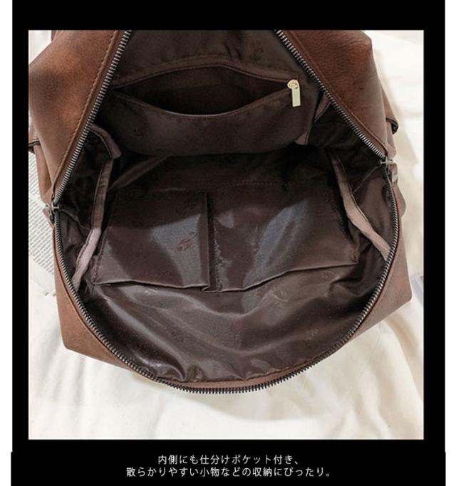 | デザイン性・機能性を兼ね備えたリュック 大容量&収納力抜群、大きく開くメインポケットは出し入れが簡単です。 シンプルなデザイン、年齢を問わず幅広くご使用いただけます。 内側にも仕分けポケット付き、散らかりやすい小物などの収納にぴったり。 質の高いPU素材を採用する。お手入れ簡単にもうれしい♪ | |