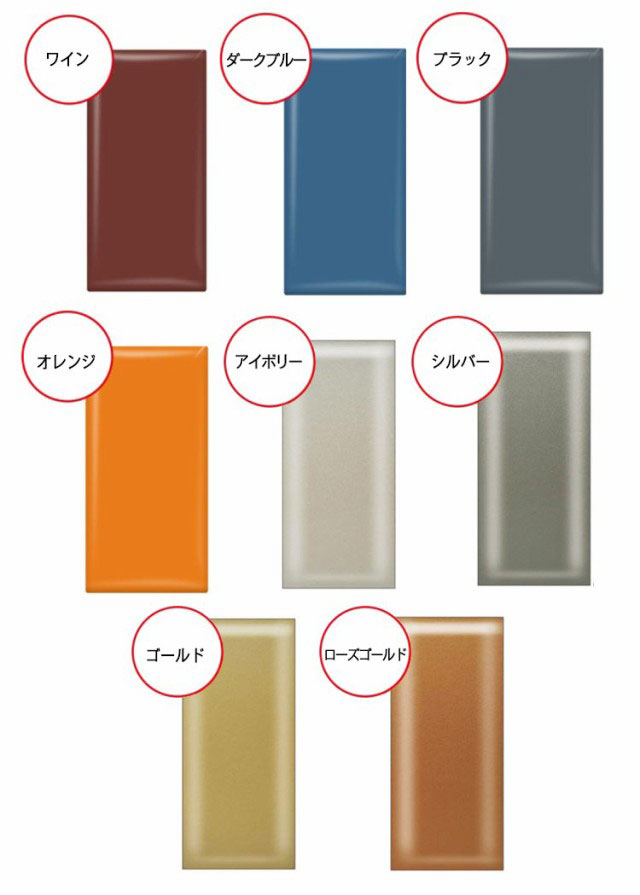 | 色 | アイボリー ブルー ライトグレー ピンク1 イエロー1 グリーン イエロー2 ミントグリーン ダークグリーン ピンク2 パープル レッド ワイン ダークブルー ブラック オレンジ ホワイト シルバー ゴールド ローズゴールド |