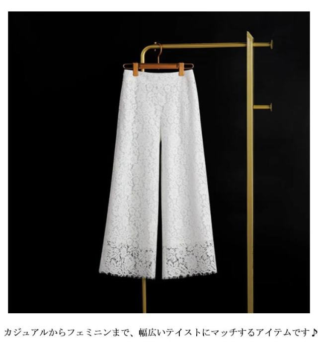 レースパンツ ワイドパンツ レディース 花柄レース 総レース フレアパンツ 9分丈 裏地付き ロングパンツ 長ズボン ワイド ガウチョパンツ ゆったり 大きいサイズ 体型カバー きれいめ レイヤード 重ね着 エレガント かわいい おしゃれ カジュアル 春 夏 秋 送料無料