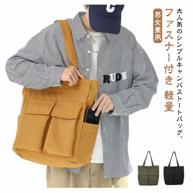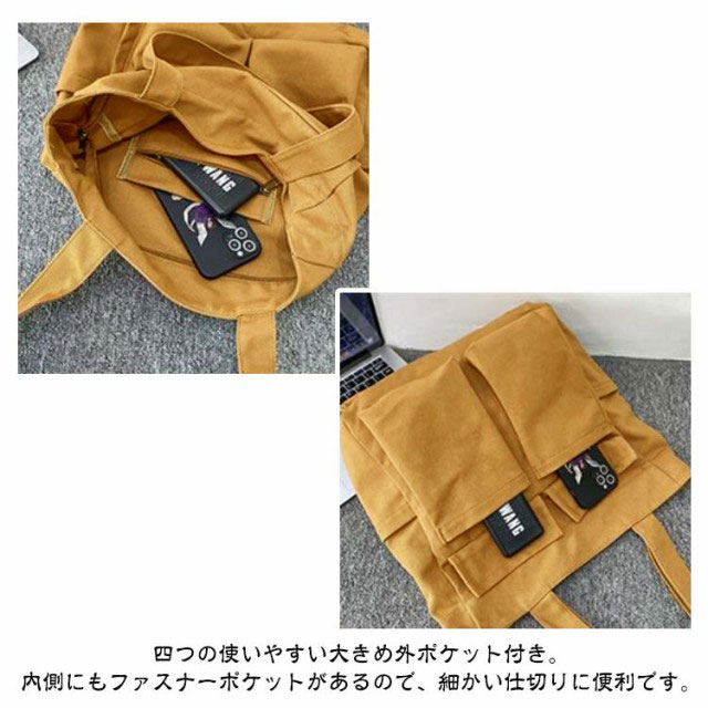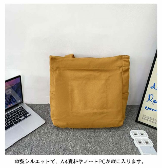 トートバッグ 縦型 A4 大容量 レディース キャンバス トート ファスナー付き 大きめ 軽量 肩掛け 通学 通勤 エコバッグ ショッピングバッグ ビッグ トート ポケット多い 鞄 カバン 韓国 メンズ ユニセックス 【送料無料】