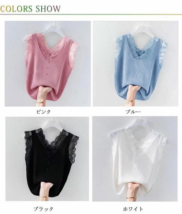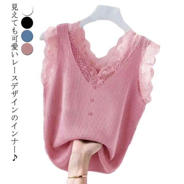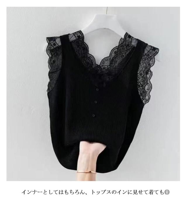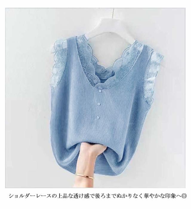 襟レース キャミソール レース サマーニット レーストップス インナー タンクトップ レディース トップス ノースリーブ vネック 肌着 シンプル 無地 薄手 シアー カットソー 着回し 春 秋 夏 夏トップス きれいめ 重ね着 送料無料
