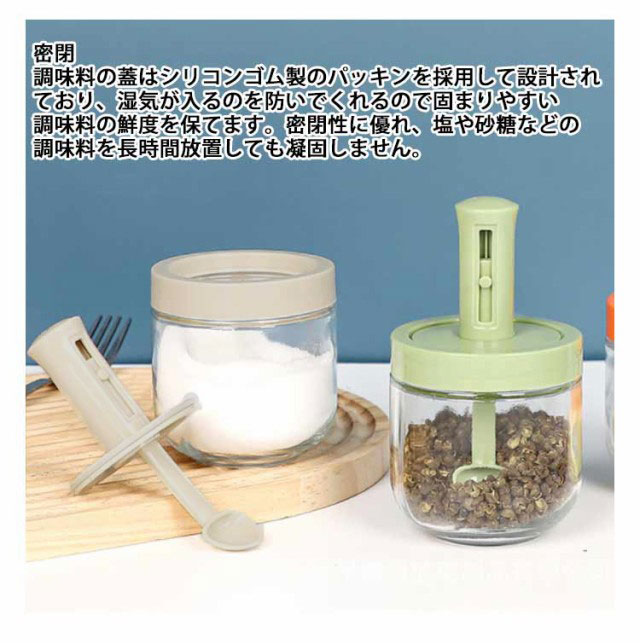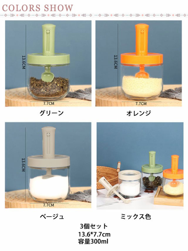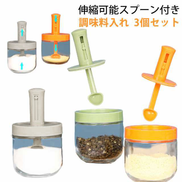 調味料入れ 3個セット スプーン付き 塩入れ 砂糖入れ スパイスボトル 調味料ポット コーヒー 砂糖ボトル ガラス 使いやすい おしゃれ 収納 保存 湿気防止 調味料容器 密閉容器 伸縮可能スプーン付き スパイス入れ 密閉ポット 小さじ長さ調節可能