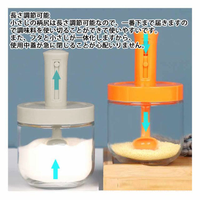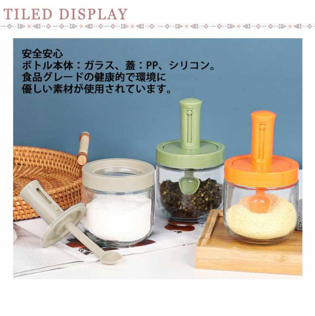 | 【調味料入れ】【3個セット】【伸縮可能スプーン付き】 ★安全安心 ボトル本体:ガラス、蓋:PP、シリコン。食品グレードの健康的で環境に優しい素材が使用されています。 ★使いやすい スプーンと蓋が一体化しているので、片手で操作できます。ボトルの口が大きく設計されているので、調味料を注入しやすく、お手入れも簡単です。 ★整理整頓 調味料を簡単に入れるだけで、キッチンが整然としています。シンプルなデザインで、調理スベースも食卓も選ばず、キッチンに統一感を出してすっきり下印象を与えられます。 ★長さ調節可能 小さじの柄尻は長さ調節可能なので、一番下まで届きますので調味料を使い切ることができて使いやすいです。 また、フタと小さじが一体化しますから、使用中蓋が急に閉じることが心配いりません。 ★密閉 調味料の蓋はシリコンゴム製のパッキンを採用して設計されており、湿気が入るのを防いでくれるので固まりやすい調味料の鮮度を保てます。密閉性に優れ、塩や砂糖などの調味料を長時間放置しても凝固しません。 ★幅広い用途 調味料ボトル、塩、コショウ、砂糖、生姜、シナモン、黄キャベツ、ニンジンなどのスパイスやパウダーケーキとして使用できます。ご家庭やレストランに最適です。 | |