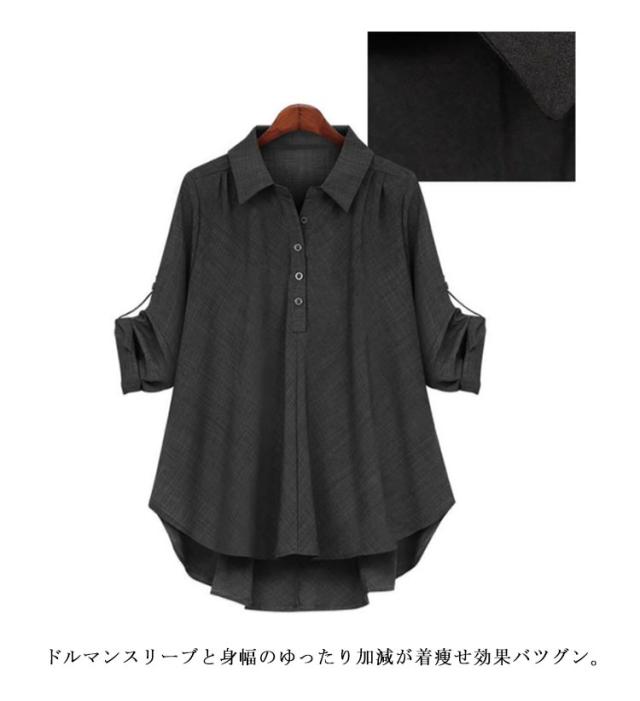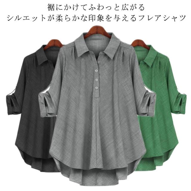 フレア シャツ チュニック レディース 春 長袖 ロングシャツ フレア トップス チュニック Aライン 襟付き プルオーバー ドロップショルダー 体型カバー ゆったり シャツブラウス ドルマンシャツ 無地 ボタン付き 30代 40代 送料無料