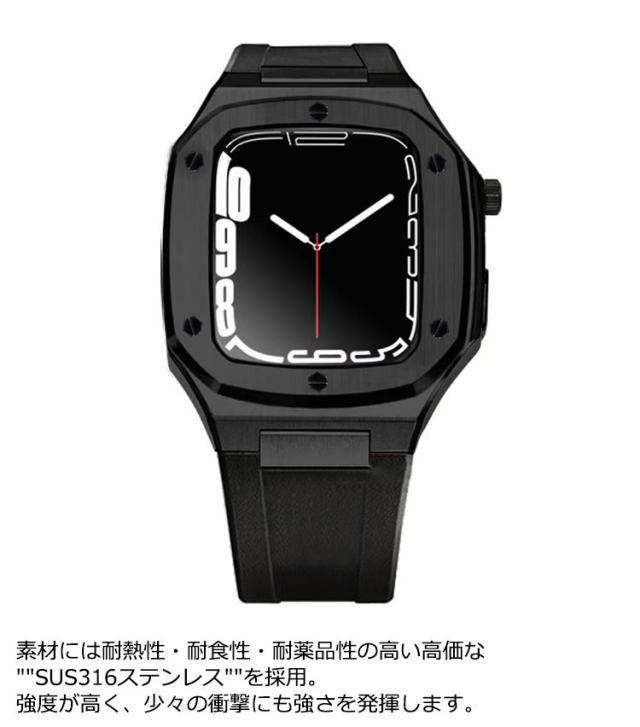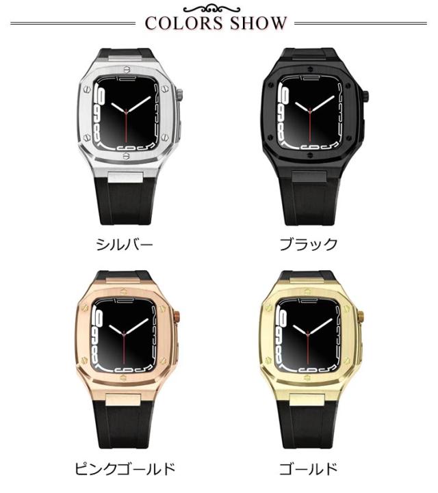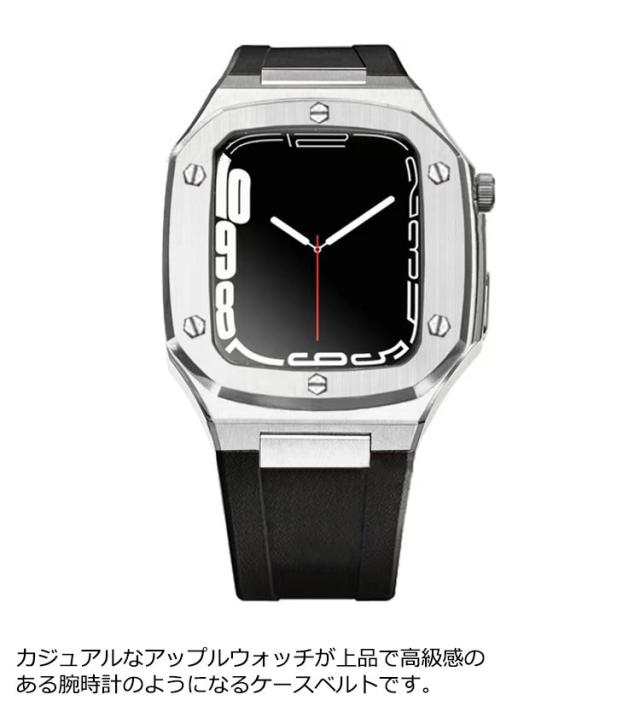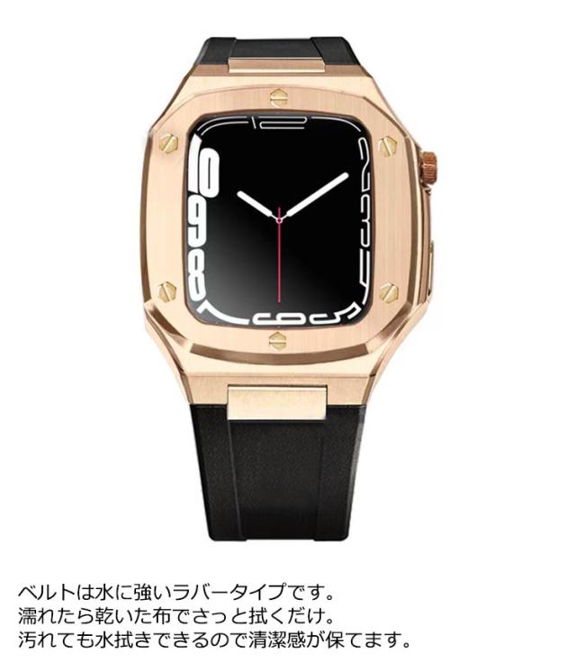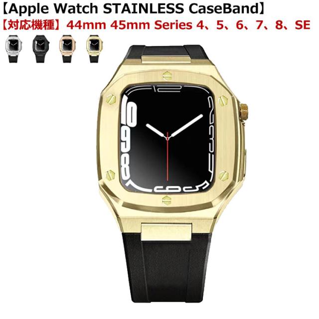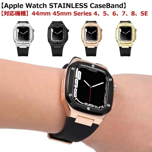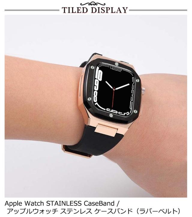 アップルウォッチ バンド ステンレス ケース カバー 一体型 バンド ラバー apple watch 高級ベルト ケースバンド メンズ ベルト 44mm 45mm 一体型 おしゃれ 腕時計 ラバーストラップ シルバー ブラック ゴールド ピンクゴールド 送料無料
