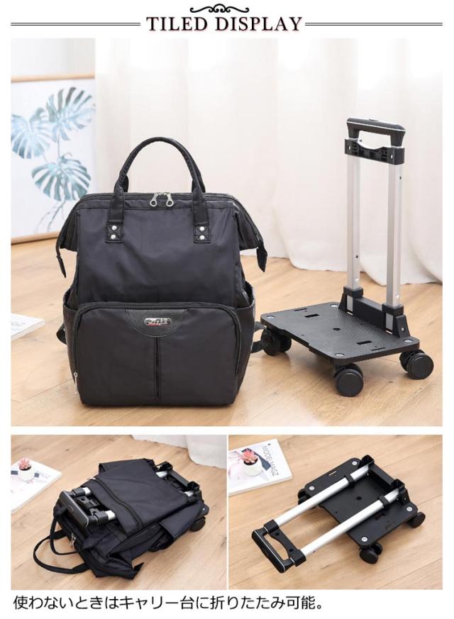 | 高い機能性とデザイン性を兼ね備えたリュック&キャリー です。 リュック単品、キャリーカットとしてもお使いいただけます。 伸縮ハンドルを伸ばしていき、 カチッと音がする所で止めます。お好みの長さが選べます。 使わないときはキャリー台に折りたたみ可能。 耐引裂・耐摩擦・撥水加工を施して丈夫で突然の雨でも安心。 雨に濡れてしまったらすぐに拭き取ります。 内側は防水素材です。 摩耗、引き裂き、擦リ切れに強く、耐久性に優れています。 背面に大きなファスナーポケット付きです。 男女兼用で使えるリュック&キャリーリュック! | |