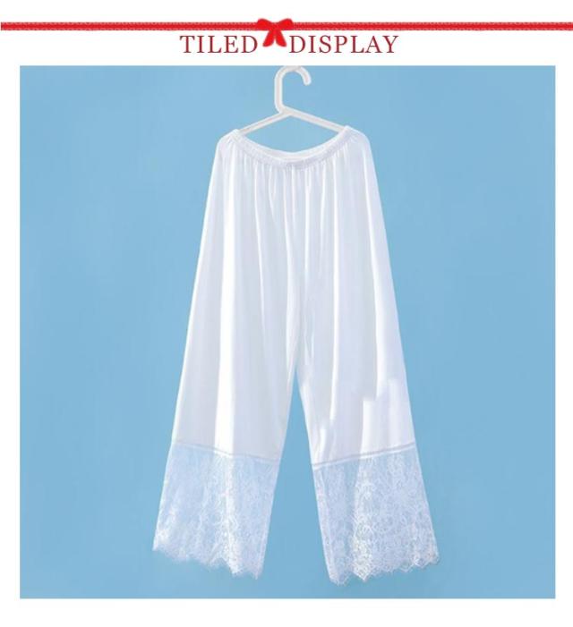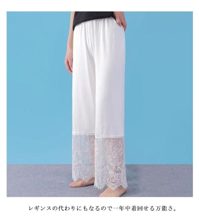 ペチパンツ 裾レース ロング レディース ペチコート パンツ ウエストゴム スカラップレース 裾 見せ 春夏秋 レイヤード用 重ね着用 レース インナーパンツ 透け防止 ワンピ下 ゆったり ワイドパンツ 無地 大人可愛い 白 黒 【送料無料】