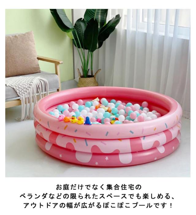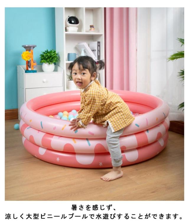 | 日差しの強い夏の日も思いっきり楽しみたいわんぱくキッズにぴったりしたかわいいプール。 大人気のデザートデザインが、夏のアウトドアをかわいく彩ります。 フワフワ床で足が痛くない、中の様子が見えやすい ぽこぽこプールは、底部にも空気が入るエアクッション仕様なので、底つき感を軽減し、固い地面の上でも痛みを感じにくいのが特徴! 底滑りも軽減するので安心してお子さまの水遊びを見守ることができます。 底部にはさらに排水口も付いているので、キャップを開けるだけでどんどんと排水していきます。やっかいなプールの排水も簡単です! 大きすぎず小さすぎないちょうどいいサイズの直径約120×深さ33cm。 お庭だけでなく集合住宅のベランダなどの限られたスペースでも楽しめる、アウトドアの幅が広がるぽこぽこプールです! プールの高さが33cmもあるので、身体全体しっかりと水につかれます。 暑さを感じず、涼しく大型ビニールプールで水遊びすることができます。 | |
