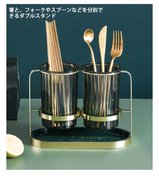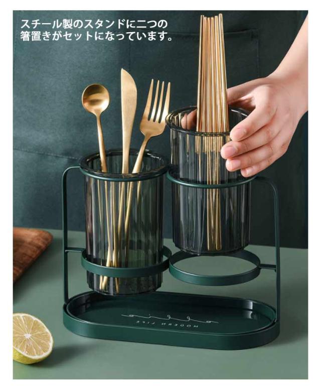 箸立て?水切り?カトラリースタンド?北欧?箸ラック?箸入れ?水切りスタンド?スチール製?スタンド付き?水切りかご?小物?収納?カトラリー収納?ラック?卓上?ダブル?半透明