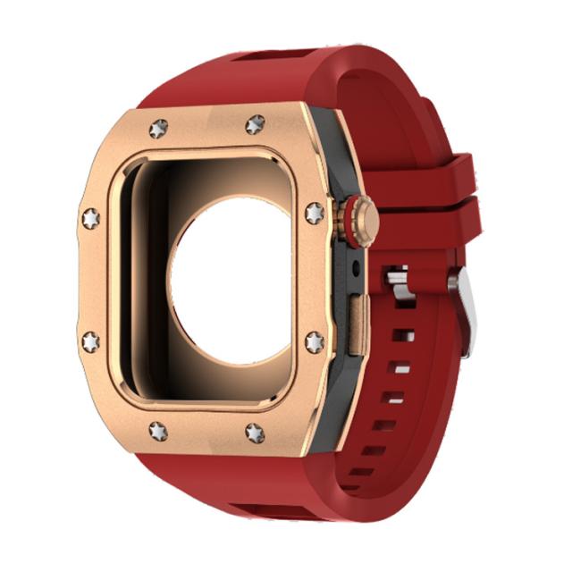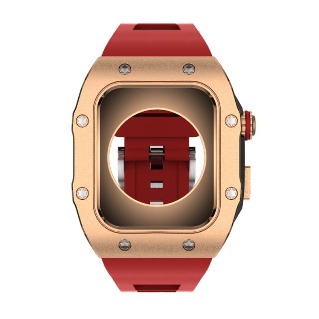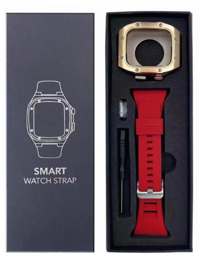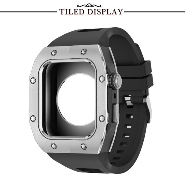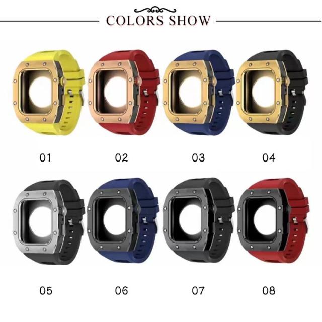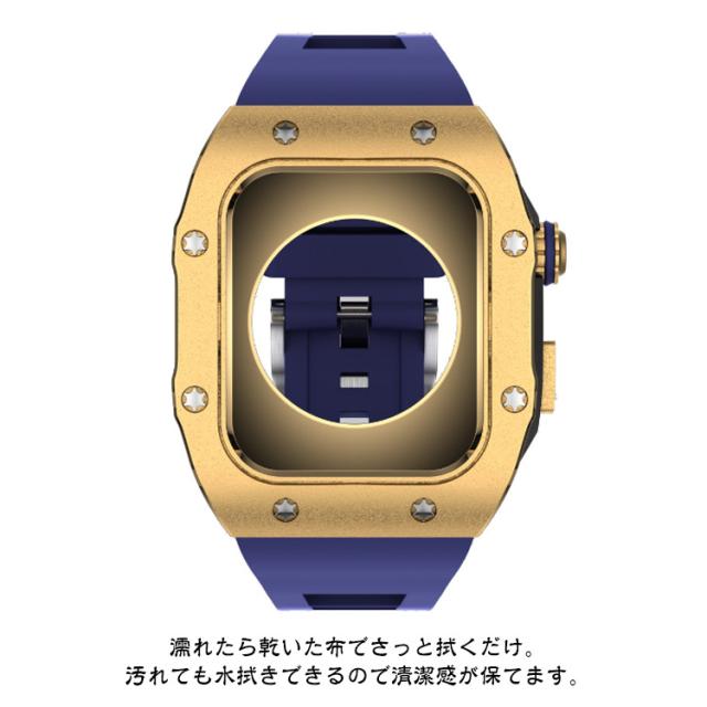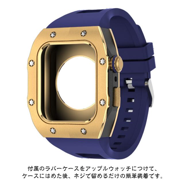 | サイズについての説明 | 【対応機種】 Apple Watch Series 8 7 (45mmのみ ) Apple Watch Series 6 SE 5 4 (44mmのみ) ※Apple Watch本体は付属しておりません。 ご注意点: 1、Apple Watchの電源を切る後、ケースの中にあるラバーを取り付けます。その際液晶部分に干渉しないようにご注意ください。 2、リューズの溝と溝をしっかり合わせてセットします。※溝がしっかり合っていないとボタンの動作が不可となります。 3、表にラバー等がはみ出していないかを確認します。裏蓋のリューズのくぼみに合わせて蓋をします。※合っていないと動作不可となります。 本体装着方法: 付属のラバーケースをアップルウォッチにつけて、ケースにはめた後、ネジで留めるだけの簡単装着です。 ※ネジ締めに関してのご注意事項: 1、精密なネジなのでネジを締めすぎるとネジ穴やネジ山の破損の原因となりますのでご注意ください。 2、精密に設計されておりますので、4箇所のネジを仮留めした上で各所を締め回ししてください。仮止めをしないでネジを締めるとフィット感や操作性に問題が生じる場合がございます。 |