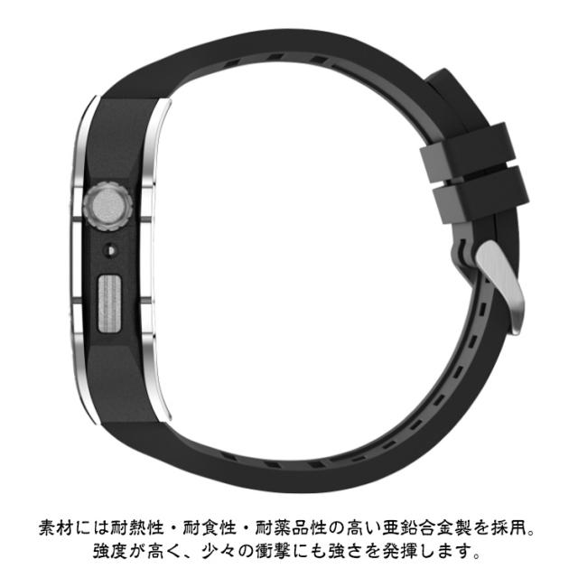 | 【Apple Watch case series 8 7 6 SE 5 4用 44mm 45mm用】 頑丈な金属製のケースは、アップルウォッチ本体の傷を防いでくれます。ハイキング等のアウトドアのご利用にもオススメです。 素材には耐熱性・耐食性・耐薬品性の高い亜鉛合金製を採用。強度が高く、少々の衝撃にも強さを発揮します。 濡れたら乾いた布でさっと拭くだけ。汚れても水拭きできるので清潔感が保てます。 付属のラバーケースをアップルウォッチにつけて、ケースにはめた後、ネジで留めるだけの簡単装着です。 | |