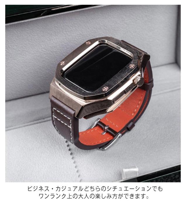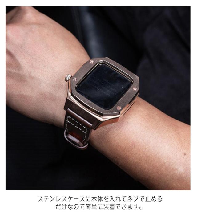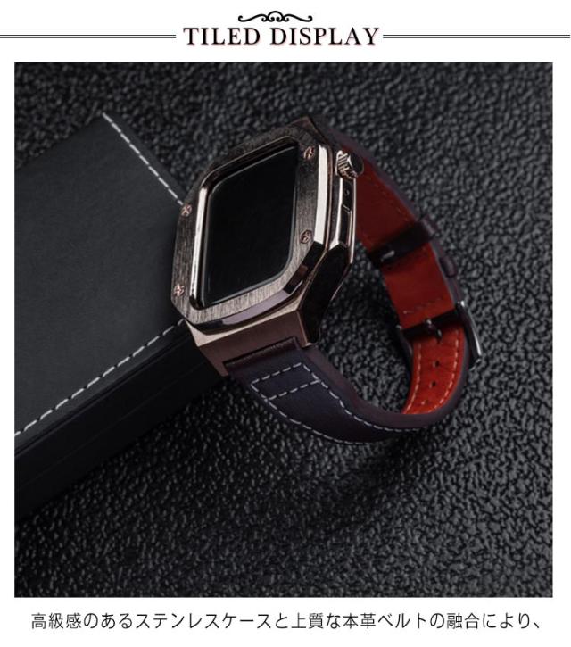 Apple Watch se ケース 44mm 45mm バンド ステンレス 高級 アップルウォッチ カバー ベルト 一体 おしゃれ 本革 レザー 革 series 7 8 6 5 4 SE ブラウン コーヒー ピンクゴールド かわいい カジュアル 社会人 大学生 高校生 20代 30代 40代 父の日 送料無料