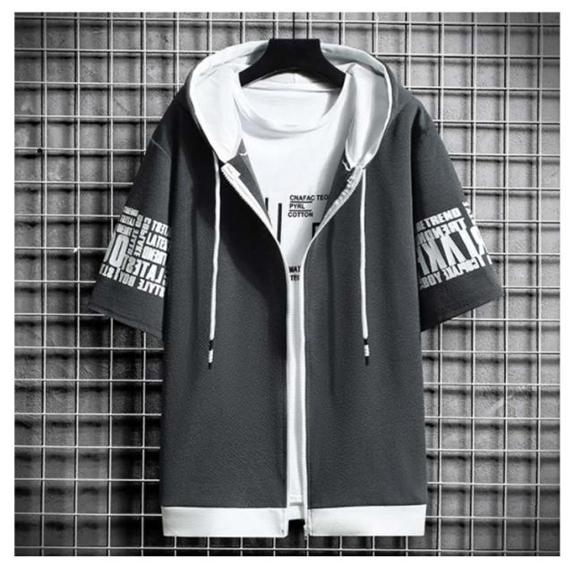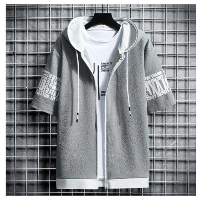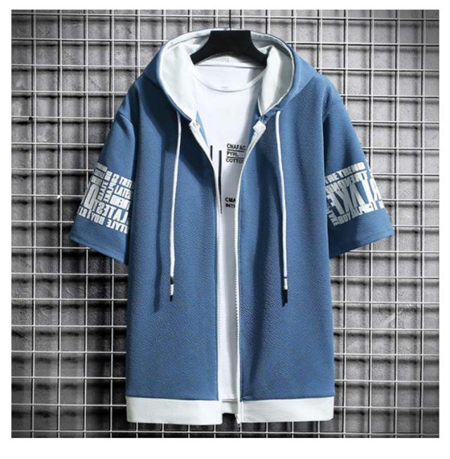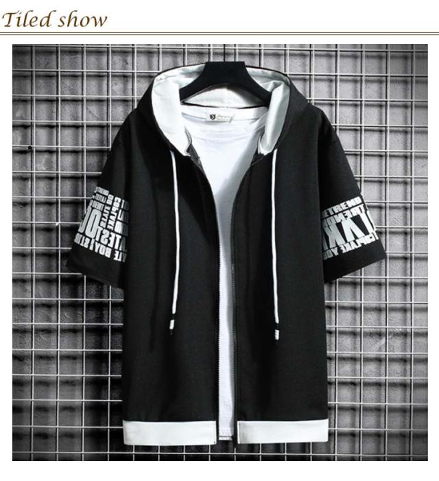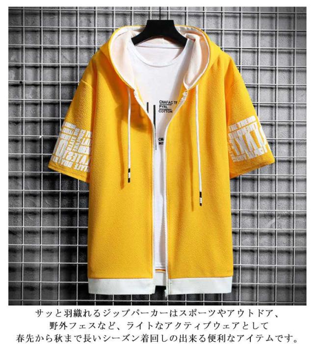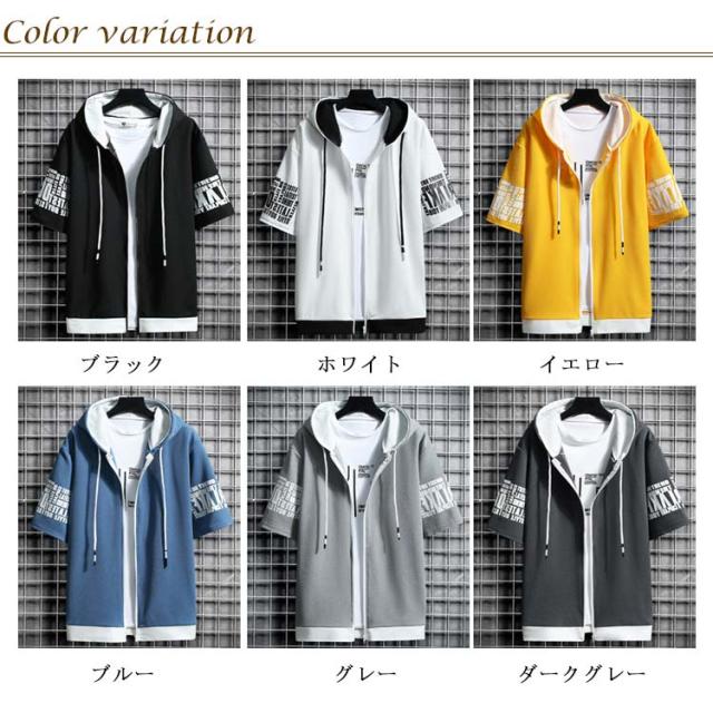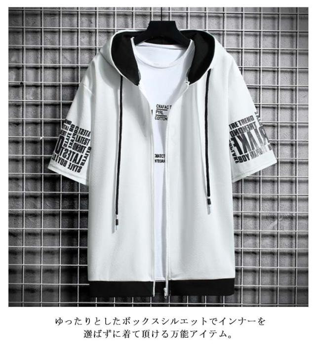 パーカー メンズ 半袖パーカー 夏 ジップパーカー プリント ジップアップパーカー フード付き トップス アウター ライトアウター 羽織り 薄手 ゆったり 大きいサイズ 部屋着 ルームウェア おしゃれ 春 夏 春服 夏服