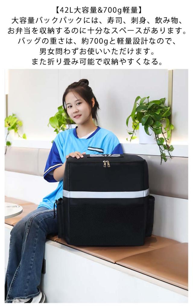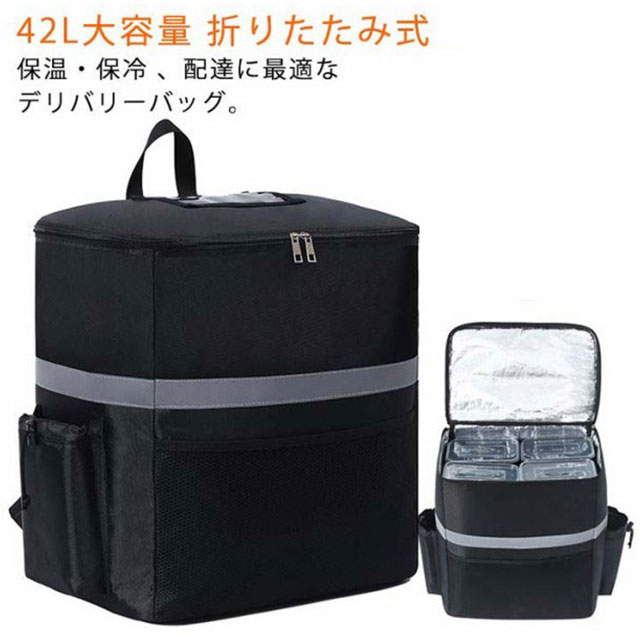 デリバリーバッグ 配達用 宅配デリバリー用 42L 大容量 折りたたみ式 ウバック 出前館 保温 保冷 ウーバーイーツバッグ 防水 リュック バックパック ピザ 寿司入り 業務用 保温ピザバッグ ピザボックス クーラーバッグ 耐荷重 仕切り ロゴなし 男女兼用 キャンプ用