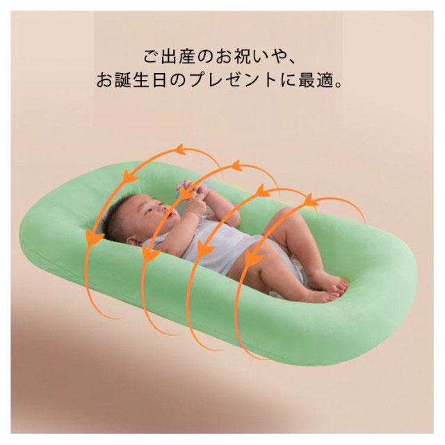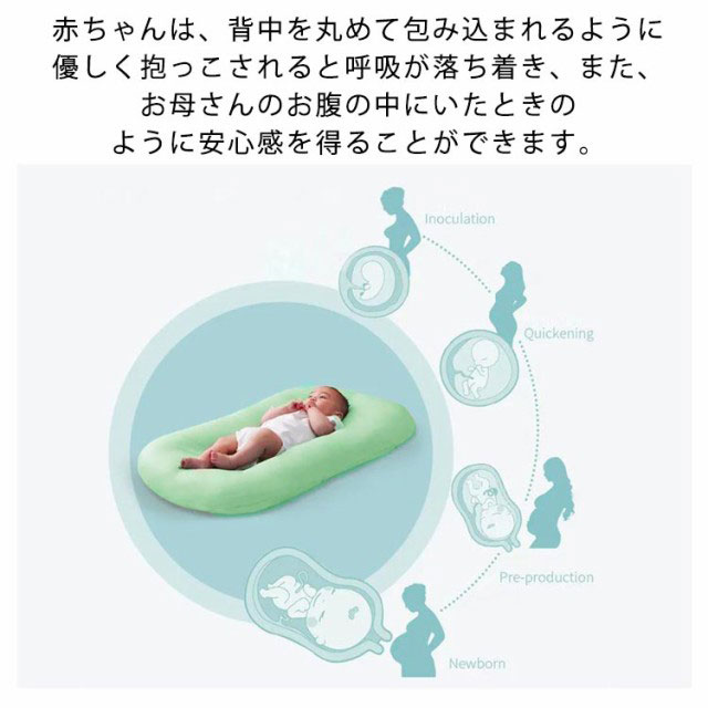 | 赤ちゃんの心が安らぐ「Cカーブ」の姿勢をキープすることができ、背骨の発育を守りながら、まるで抱っこされているような感覚で眠ることができる赤ちゃんに優しいCカーブクッションです。 赤ちゃんは、背中を丸めて包み込まれるように優しく抱っこされると呼吸が落ち着き、また、お母さんのお腹の中にいたときのように安心感を得ることができます。 中素材には心地良い弾力と透湿性を持つ、わた素材を採用。まだ未熟な赤ちゃんの身体を優しく支えつつ、快適に眠れるようこだわりました。 カバーを外して洗濯できるので、赤ちゃんが汗をかいたときや吐き戻ししたときに簡単に洗えるので便利。 ご出産のお祝いや、お誕生日のプレゼントに最適。 | |