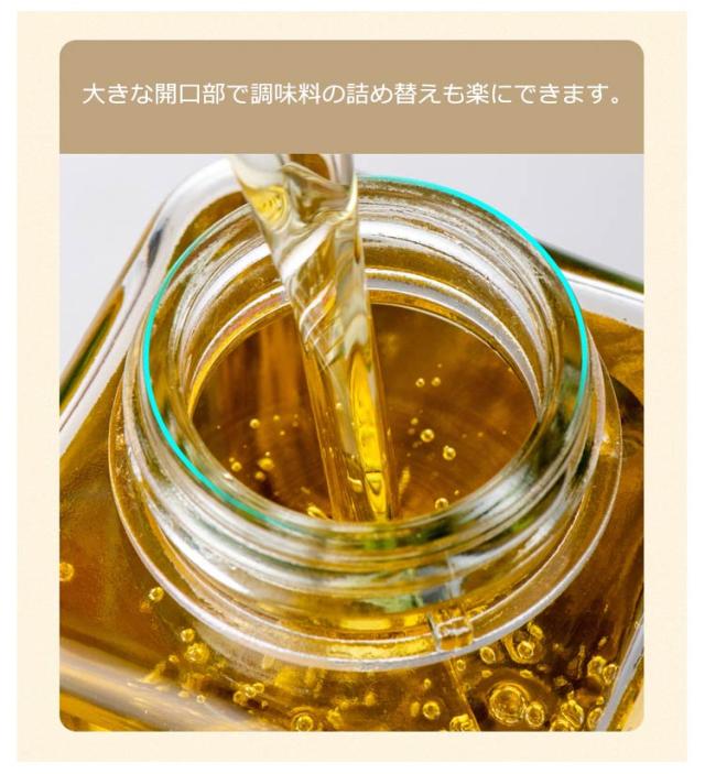 | ボトルを傾けてフタが自動的に開ける、おしゃれなスクエア型のオイルボトル。【500ml*2個セット】 醤油・みりん・酒・酢・油などの液体調味料を入れ替えるボトルセット ボトルを傾けてフタが自動的に開けます、忙しい料理中でも大活躍。 容器の中身が透けて見えるので、残量が一目で分かるのも嬉しいポイント! 大きな開口部で調味料の詰め替えも楽にできます。 パッキン付きなのでしっかりと密閉され、液漏れせず、調味料の風味も逃がしません。 パーツは分解して洗えるので、お手入れが簡単で衛生的です♪ | |